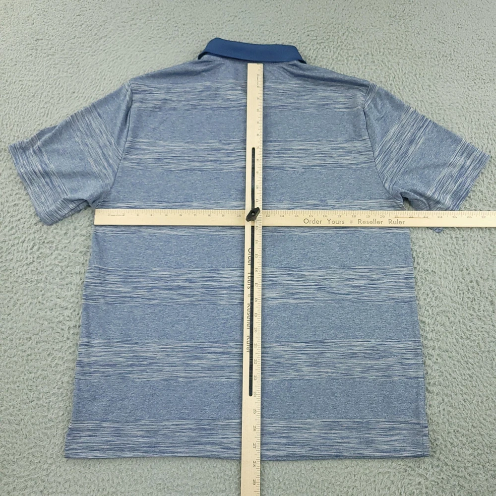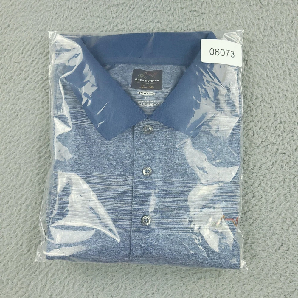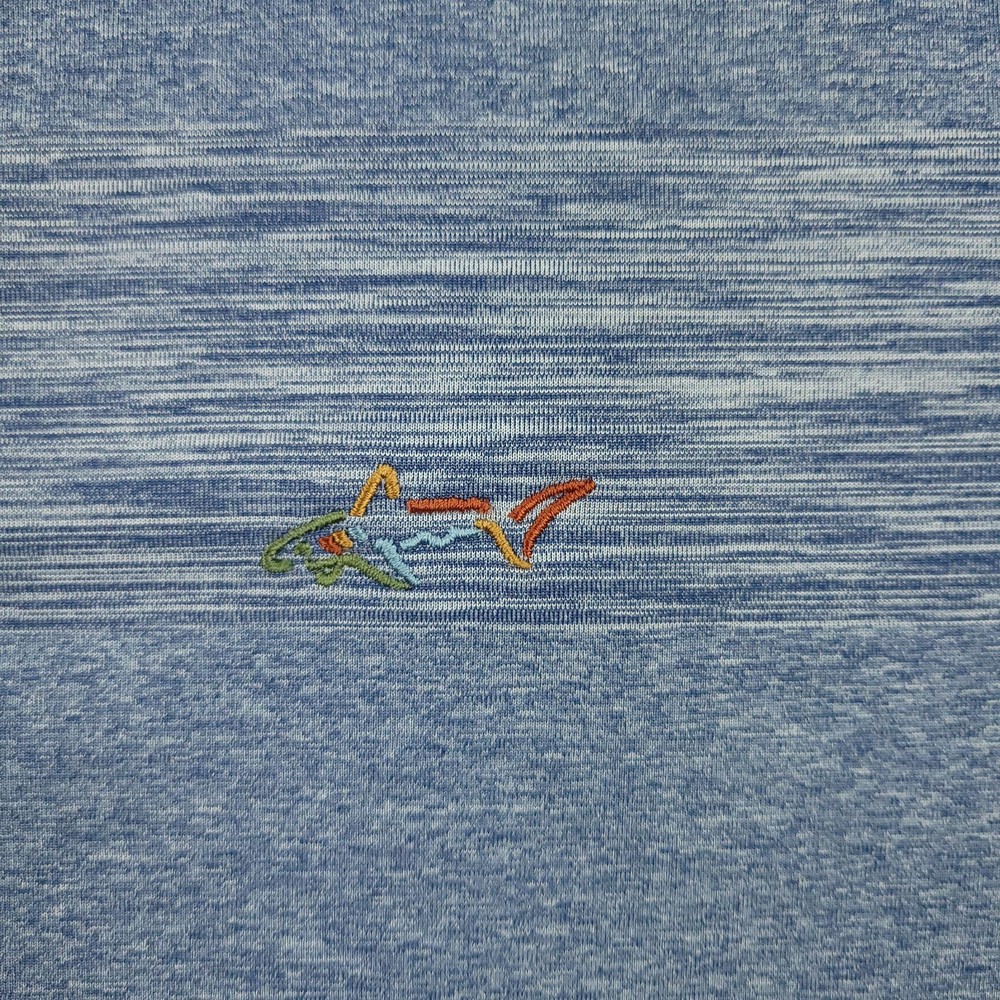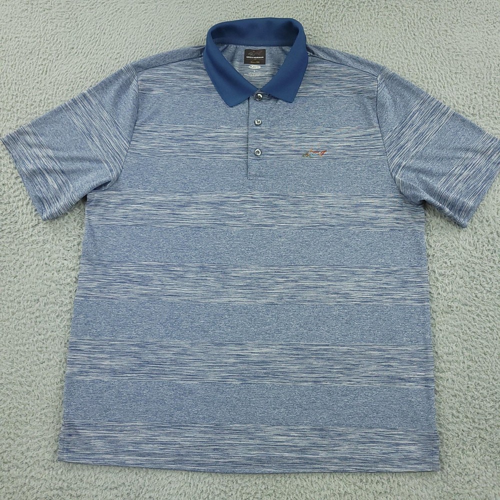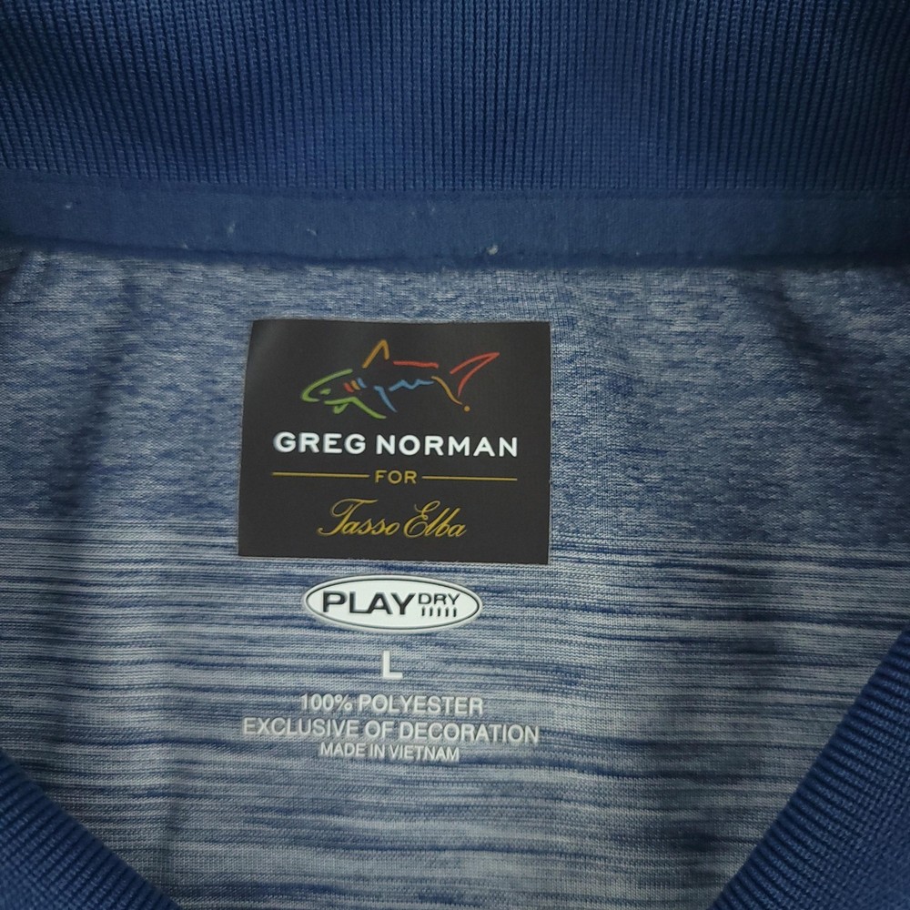 Greg Norman for Tasso Elba Polo Shirt Mens Large Blue Heather PlayDry Golf Condition: Gently worn Tag details: PLAYDRY — L — 100% polyester (exclusive of decoration). Color/Pattern: Blue heather stripe body with solid blue knit collar. Features: Short sleeves, 3-button placket, breathable moisture-wicking performance fabric. Branding: Multicolor shark embroidery at chest; Greg Norman for Tasso Elba interior label. Gender/Size: Mens Large. Made in Vietnam. Washed and dried with Fragrance Free Detergent & Dryer Sheets. Measurements are included in the photos, compare measurements with your item to ensure proper fit. (Measurements are done with the item lying flat). I ship next business day and all items include tracking. Items are added daily to my store Visit My Store Buy More & Save! Combined shipping for US customers - $1.99 for each additional item (Add items to shopping cart and discounts will automatically calculate during checkout)