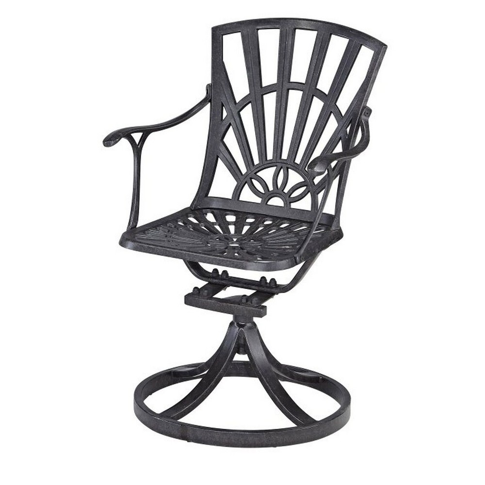 The Grenada Patio Collection will help you create paradise in your own backyard. This 5-piece dining group includes a 48"D table and four swivel chairs with cushions to bring any small group closer together. The table and chairs feature a UV-resistant cast aluminum frame, with a hand-applied powder-coated finish that is sealed with a clear coat for lasting durability. It also includes an umbrella hole, with a cap to plug it when not in use. This set consists of round dining table and four swivel chairs with cushions. Umbrella not included. Weather-resistant polyester cushions combine cozy comfort with lasting performance Charcoal gray, powder-coated cast aluminum is finished with a durable clear coat to withstand the elements Chair swivels 360-degrees and rocks back and forth for total Free Shipping Over $49.99* Details Grenada Charcoal Aluminum 5 Piece Outdoor Dining Set - 49" x 29" x 49" Product Description: The Grenada Patio Collection will help you create paradise in your own backyard. This 5-piece dining group includes a 48"D table and four swivel chairs with cushions to bring any small group closer together. The table and chairs feature a UV-resistant cast aluminum frame, with a hand-applied powder-coated finish that is sealed with a clear coat for lasting durability. It also includes an umbrella hole, with a cap to plug it when not in use. This set consists of round dining table and four swivel chairs with cushions. Umbrella not included. Weather-resistant polyester cushions combine cozy comfort with lasting performance Charcoal gray, powder-coated cast aluminum is finished with a durable clear coat to withstand the elements Chair swivels 360-degrees and rocks back and forth for total freedom of movement Table includes a hole in the center for an umbrella, with a cap to cover it Some assembly required Finish and measurements may vary Model Number6660-325C Dimensions 1 - Outdoor Dining Table29H x 48.5W x 48.5L 4 - Outdoor Swivel Rocking Chair35.25H x 20.75W x 24.25L 4 - Cushion