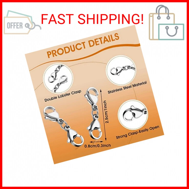 Welcome Grevosea 4 Pieces Double Lobster Clasp Extender, Stainless Steel Lobster Claw Clasps Double Claw Connector Bracelet Necklace Extender for DIY Jewelry Making Women and Girls Gifts(Silver) - DOUBLE LOBSTER CLASP: Lobster claw clasps adopt a classic double headed design, which is convenient to wear and remove. Double lobster clasp extender can tightly fasten both ends of the necklaces or bracelets, and they can easily add additional length to your jewelry - HIGH QUALITY: Lobster clasps for jewelry making are made of quality stainless steel material, reliable and sturdy, not easy to break or bend. Bracelet extender with polished surfaces, which is not easy to fade and don't need to worry a lot that the items lose luster in a short time - EASY TO USE: Silver lobster clasps are equipped with 2 claw buckles at the ends, more convenient to wear, you just need to push down the protruding part of the lobster clasp then it can be unlocked, then attach it to your necklaces or bracelets, without worrying about falling and losing - WIDE APPLICATION: Necklace connector clasps are suitable for various jewelry making projects, which can be a connector for broken bracelets or necklaces, add pendants and accessories on your jewelry chains key chain or watch chain. compatible with beads, threads and ropes - PACKAGE INCLUDES: You will receive 4 pieces of lobster clasps, measuring about 0.8x2.5cm/0.3x1inch. Perfect size for DIY jewelry design or craft making, meet your crafting or timely replacement needs. Double claw connector is suitable for craft beginners to try and improve their hands-on skills The Fine Print Payments We accept the following payment methods: eBay Managed Payments Please pay as soon as possible after winning an auction, this will allow for quicker shipping times! Returns We accept returns. You can return unopened items in the original packaging within 30 days of your purchase with receipt or proof of purchase. If 14 days or more have passed since your purchase, we cannot offer you a refund or an exchange. Upon receipt of the returned item, we will fully examine it and notify you via email, within a reasonable period of time, whether you are entitled to a return. If you are entitled to a return, we will refund your purchase price and a credit will automatically be applied to your original method of payment. Only regular priced items may be refunded. Sale items are non-refundable. Shipping Shipment processing time All orders are processed within 2-3 business days. Orders are not shipped or delivered on weekends or holidays. If we are experiencing a high volume of orders, shipments may be delayed by a few days. Please allow additional days in transit for delivery. If there will be a significant delay in shipment of your order, we will contact you via email or telephone. Shipping rates & delivery estimates Shipping charges for your order will be calculated and displayed at checkout.