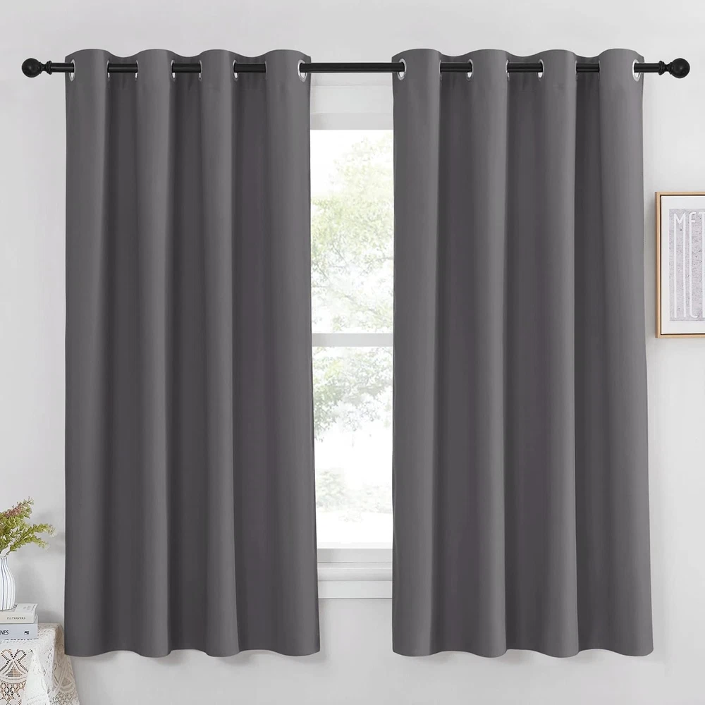 Grey Blackout Curtain Thermal Insulated Room Darkening Drape 52x63 Inches
