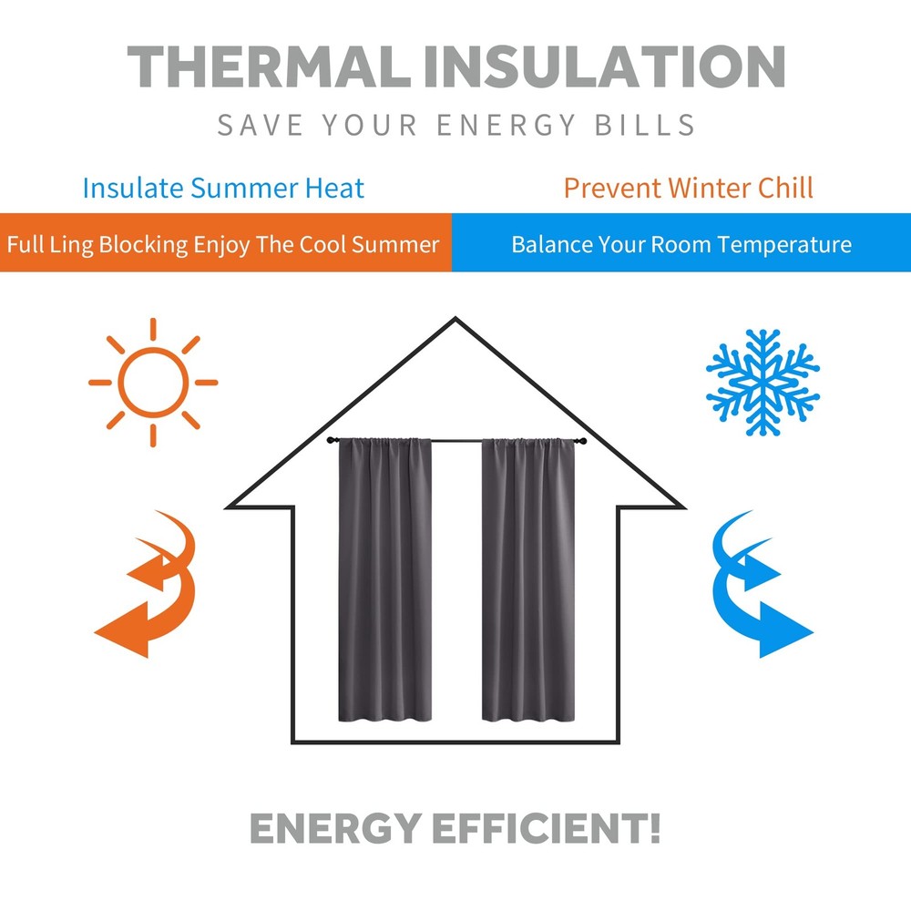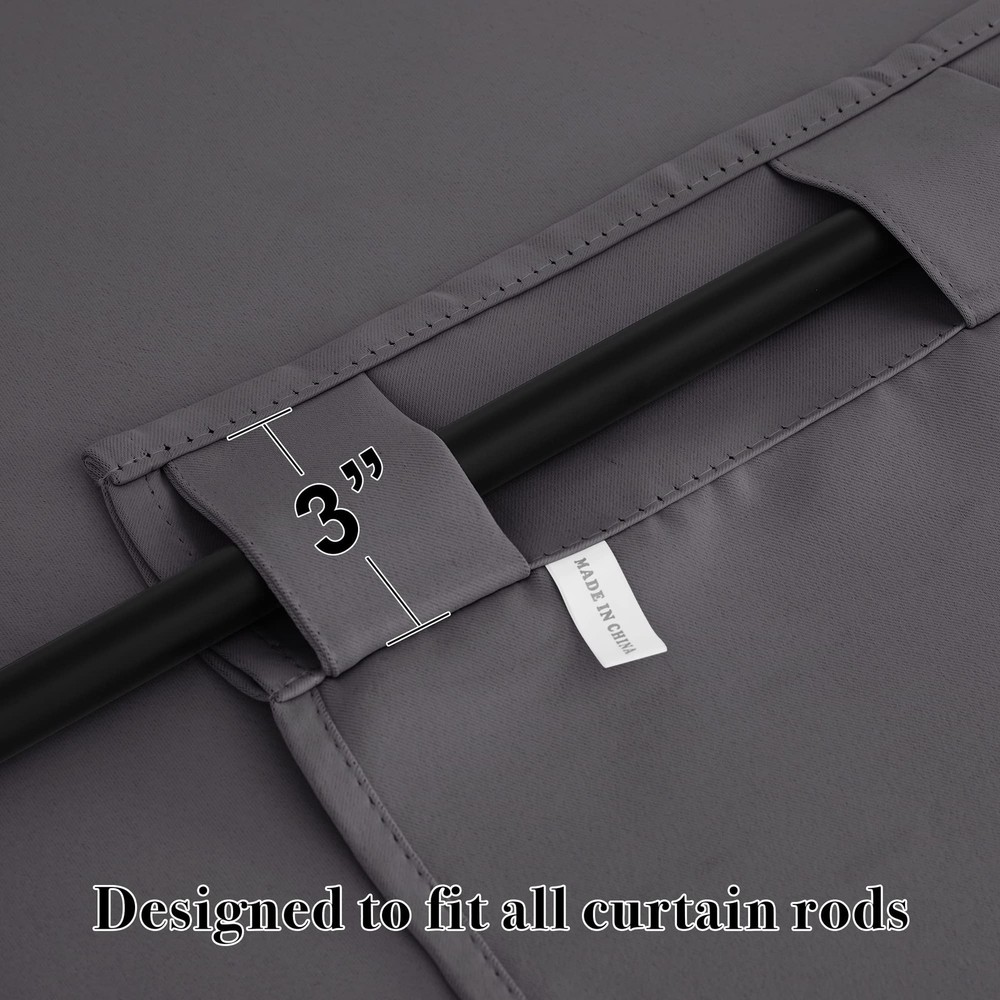 Back Tab & Rod Pocket Blackout Curtains are the perfect addition to an interior filled with pale walls. Created with practicality, these blackout curtains panels do well to your home and office. DETAIL INFORMATION Available in a range of size and color options. Made of 100 % high quality soft durable polyester. Sold as 2 panels, each mesures 42" width,total width is 84 inch. Each curtain panel has back tab & slot top, universal fit to most of rods and available in 2 hanging options. KEY PRODUCT FEATURES Block 85-95% sunlights(Dark color works better). Stop the sight outside to maximum ensure the privacy. Add thermal efficiency to ensure that the room temperature is regulated. Reduce some noise for a peaceful environment. Energy saving by protecting furniture from exposing to the sun. Super soft soft drapery add a wonderful touch. HEADER TYPE 2 header types ( back tab & rod pocket ) make our draperies fit easily to standard curtains rods with differents styles. The headinng tape makes it easy to creat pleats using with rods / hooks / rings. EASY TO MAINTIEN Machine washable Quick ironing or steam cleaning HINTS Due to different computer/screen display, the color of the actual item may slightly different from the above images. is always looking forward to serving our clients with warmth and full ranges of services. Please do not hesitate to contact us if you have any queries. READY MADE - Blackout curtains sold as 2 panels, each measure 42" width by 54" length. Curtains can cover windows to full width. The pleated style should be 1.5-2.6 times to your windows. HEADER TYPE - Each panel with 3" pocket and 6 back tab loops, which can be hung in different style: Back Loops, Slot Top or with your Clip-rings. LIGHT BLOCKING - Curtains block 85-99% sunlight (Dark color works better) for maximum privacy and undisturbed sleep, which benefit from the innovative triple weave technology. ENERGY SMART - Thermal property of the blackout curtains ensure that the room temperature is regulated. Energy-saving by protecting indoor furniture from directly exposing to the sun. HEAVY-DUTY - Same material back as the front. Easy to maintain and machine washable. Use only non-chlorine bleach & warm iron when needed. Tumble dry low. Visit to find out more.