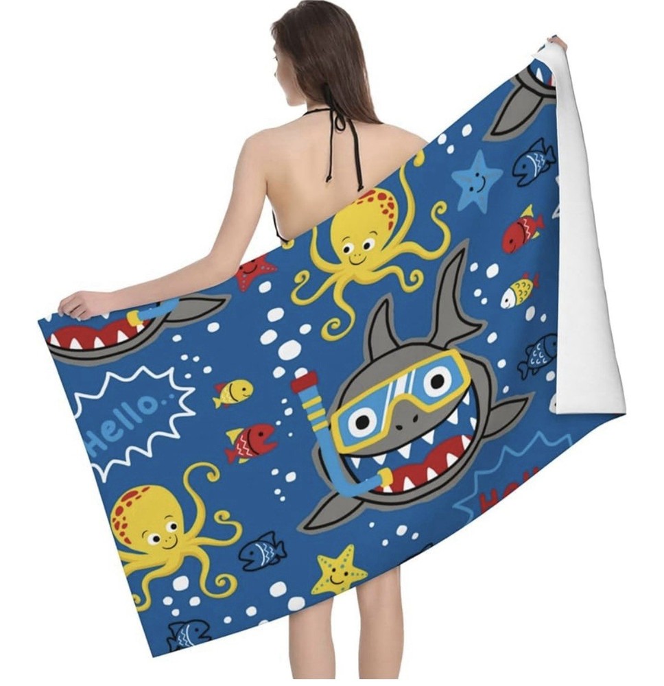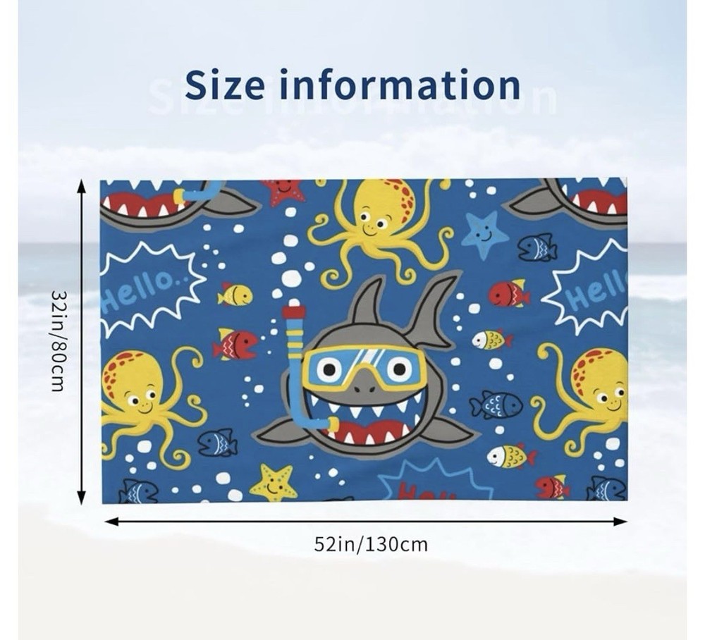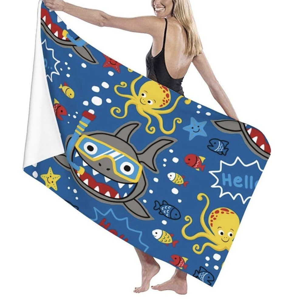 Unwind and soak up the sun with this vibrant Grey & Blue Shark Aquatic Beach Towel. Oversized at 70x150cm, it provides ample coverage and comfort for any beach-goer or poolside lounging. The playful beach pattern is complemented by a soft polyester material that's gentle on the skin and easy to clean. Ideal for adults, this multicolored towel features a fish theme, adding a touch of whimsy to your towel collection. It's versatile enough for use in the bathroom or while enjoying a day out. See the photos for the precise dimensions and the towel's vibrant design that's sure to stand out.