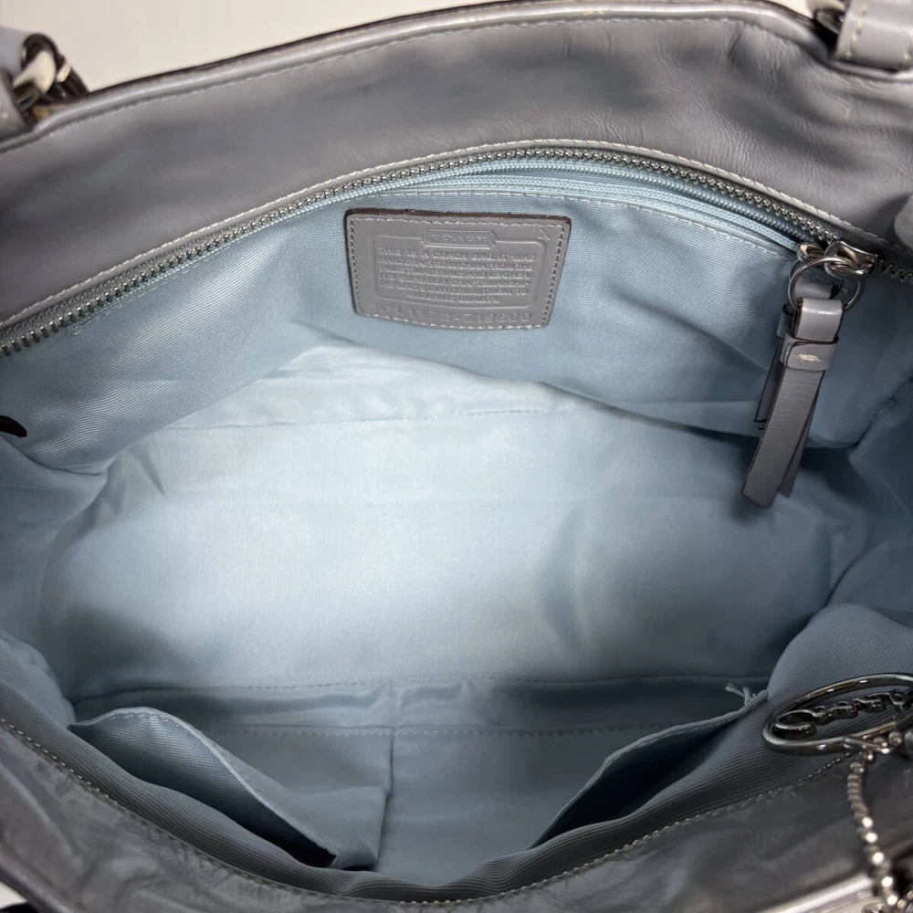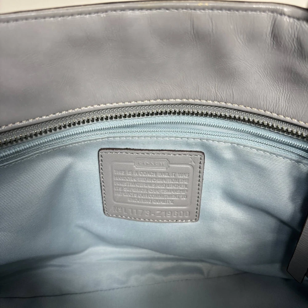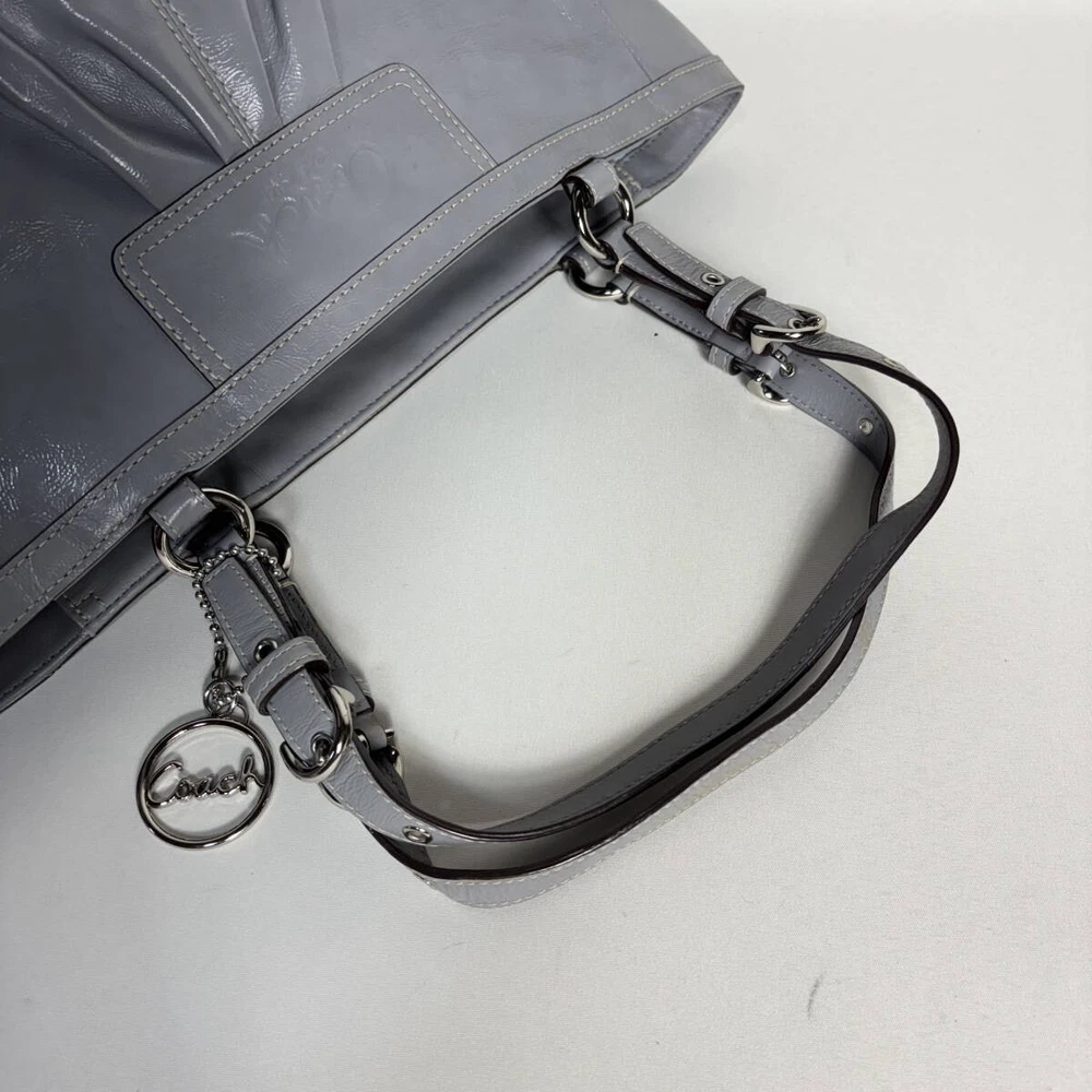 This Coach handbag is absolutely stunning! The grey enamel leather is sleek and luxurious, perfect for both casual and formal looks. The craftsmanship is top-notch, and the seller packaged it with great care—arrived in perfect condition. Highly recommend for anyone looking for a stylish, high-quality bag!