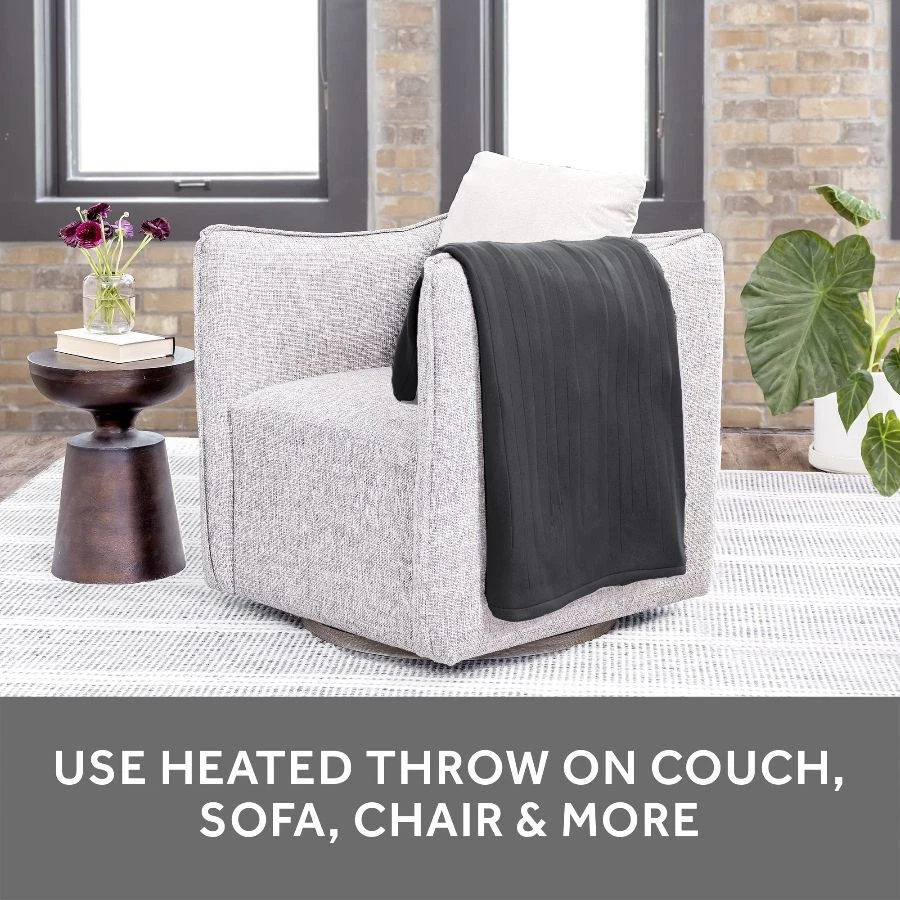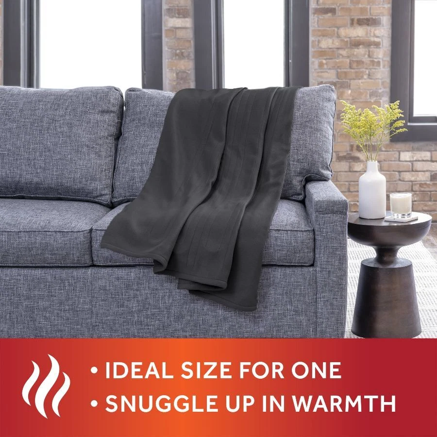 Snuggle up with the Sunbeam Fleece Electric Heated Throw to beat those winter chills and warm you up on cold nights. Indulge yourself with its comfy and cozy fleece fabric to keep you toasty and comfortable while you unwind. The stylish color adds a accent to any decor. This 50” x 60” electric throw makes a great accessory while relaxing on the couch, bed or your favorite chair. It includes an easy-to-use push button controller with 3 personalized heat settings, allowing you to get just the right temperature, and a 3-hour auto-shut off feature for added peace of mind. The Electric Heated wires are made with premium components and includes a wire technology that senses and adjusts for continuous heat and safe operation. When ready to clean, simply detach the controller from the throw and place into the washing machine and tumble dry for easy care, stays silky soft after many washes. You can rest easy knowing it was built to last and includes a limited 5-year warranty. On Dec 26, 2024 at 18:45:56 PST, seller added the following information: