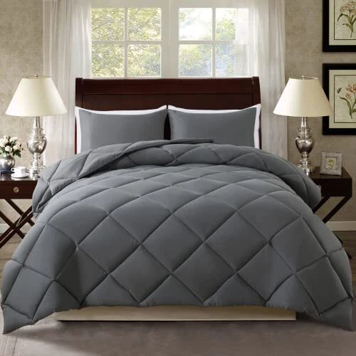Return Policy Fast Delivery Trusted seller Grey Queen Comforter Set with 2 Pillow Shams - 3 Pieces Bed Comforter Set - Gray Down Alternative Comforter Set - Lightweight All Season Bedding Comforter Sets Queen Size(88x92 inch) Product Description 【3-Piece Bedding Set】Queen Grey comforter set includes 1* Grey Down Alternative Comforter (88"x92") and 2* Grey Pillow Shams (20"x26") with envelope closure. It fit well for queen sized bed. The bedding comforter sets can be used as a duvet insert or as a stand-alone comforter. 【Ultra Soft & Lightweight】Ultra soft 100% brushed fiber cover made by unique peach-skin processing technology makes the comforter soft and fluffy. Gray down alternative comforter is overfilled with whole piece 160 GSM microfiber, which ensures it cloud-like soft, noiseless, breathable and offers good puff to keep you warm and cozy for all seasons. 【Stylish & Long-lasting】Decorate your bedroom with our bedding comforter sets. Rich colours offer more choices to match various decoration styles. Long-lasting box stitch and 4 corner tabs keep the filling in place and resists from shifting and clumping. 【Easy Care & Tips】Machine wash in the gentle cycle with cold water. Sun-dry or tumble dry on low heat. Do not bleach. Do not iron. Tips: Our comforter is vacuum packaged, it will fluffy up nicely after airing it for a few hours or putting it into dryer on low for 15-20 mins. 【Ideal Gift & Guarantee】 Comforter Set - a sweet gift to show your family and friends on Father's Day, Mother's Day, Birthday, Christmas, New Year, Housewarming or Back to School.Your shopping experience is our first priority. For any reason in the first 30 days you are unsatisfied with quality issue, please contact us for help. We will try our best to settle the problems ASAP. 【Brand Name】Our brand is not ELNIDO. So when you place an order, please pay attention to the size of the product. The brand name, , will appear on the label of the product and the specific size will also be written on the right end of the label. Shipping Returns Payment Shipping Shipping is FREE to all addresses other than APO/PO boxes in the lower 48 states. All our stock ships from US-based warehouses. Shipped via USPS or UPS (depending on location and package weight) Unless stated otherwise, all orders will ship within 24-72 hours of your payment being processed. Check our feedback to see the great reviews of FAST shipping we offer. Returns Seller does not accept returns Payment We currently accept payment via eBay managed payments only. Once payment is cleared, we will dispatch your shipment within 1-3 business days. Please refer to the "Shipping" tab for more information regarding shipping speed to your destination.