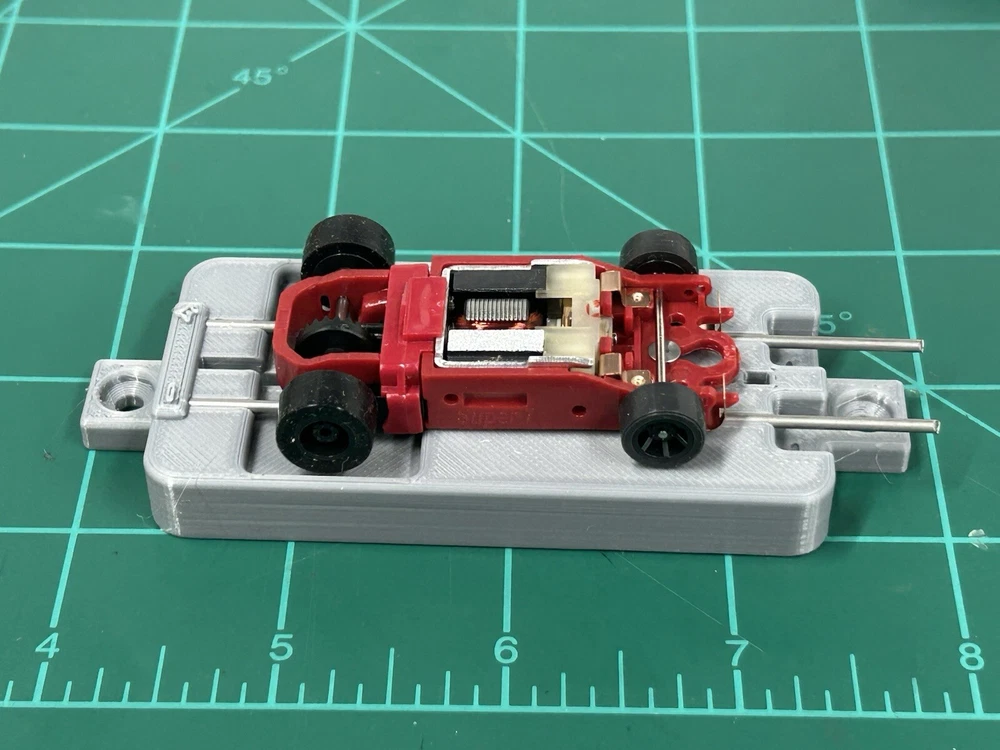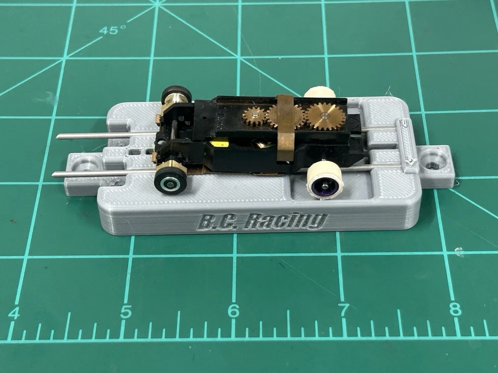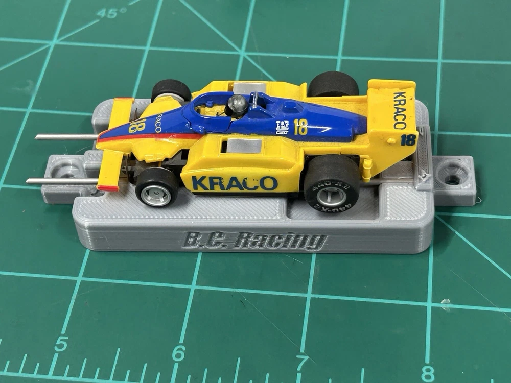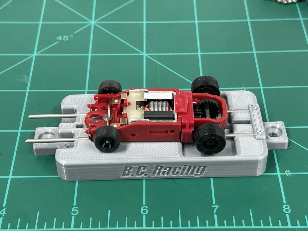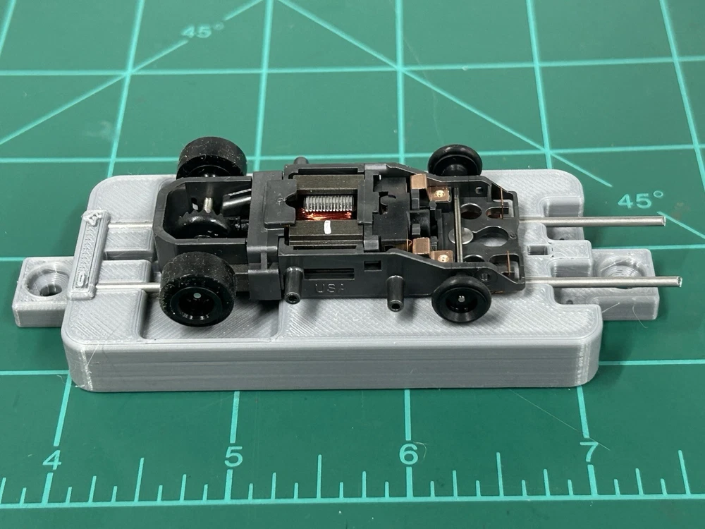 This is for SLOT CAR New style break in stand works with or without body fits many Chassis including HC slots Super 7 , Viper , Tyco AFX and many more just hook to a 9v battery or a power supply to run chassis for warm up or break in . Stand ONLY chassis are for display only. Condition is New color may vary Other colors availble See other auctions or message me