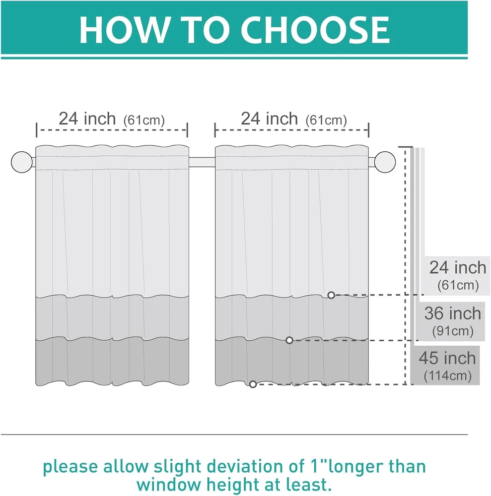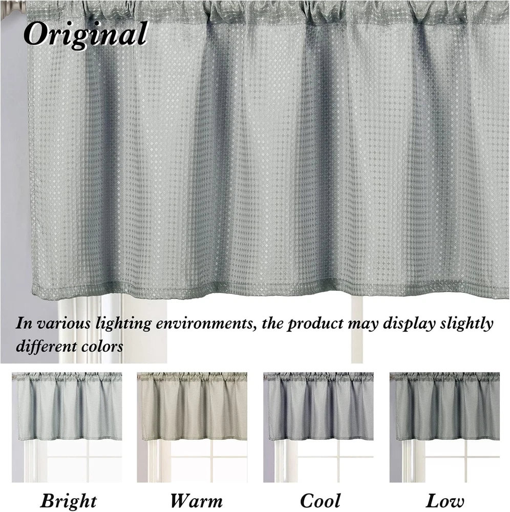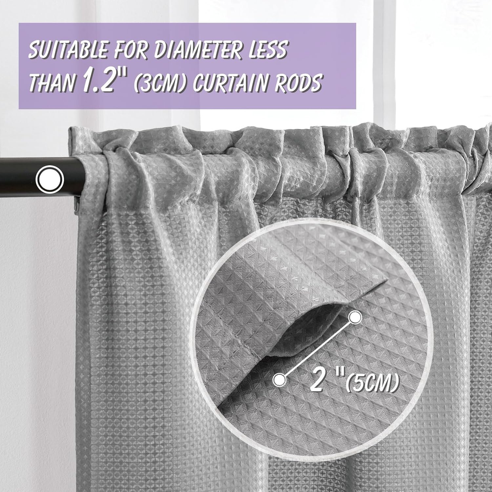Color: Does not apply Occasion: Baby Shower Specific Uses For Product: Privacy, Shower, Decorative Brand: Does not apply Indoor/Outdoor Usage: Indoor Product Dimensions: 24"L x 24"W Lining Description: Unlined Theme: contemporary Type: Does not apply Hanging Method: Rod Pocket Special Feature: Rod Pocket, Light-Filtering, Water Repellent, Fade Resistant, Was Unit Count: 1.0 Count Closure Type: Rod pocket Item Weight: 4.6 ounces Package Weight: 0.15 Kilograms Product Care Instructions: Machine Wash Fabric Type: Fabric Curtain Form: Window Tier Curtain Style: Modern Room Type: Bathroom, Kitchen, Home Office, Nursery, Dining Room Water Resistance Level: Water Repellent gtin13: 7445028630656 Recommended Uses For Product: Indoor Opacity: Light-filtering Number of Items: 2 Size: 24"W x 24"L (Pack of 2) Seasons: All Season Country of Origin: China Top Style: Rod Pocket Compatible with Rod Size: 1.2 Inches Weave Type: Waffle Pattern: Solid Material: Fabric Curtain pleat: Ripple Fold UPC: 7445028630656 Included Components: curtain tier