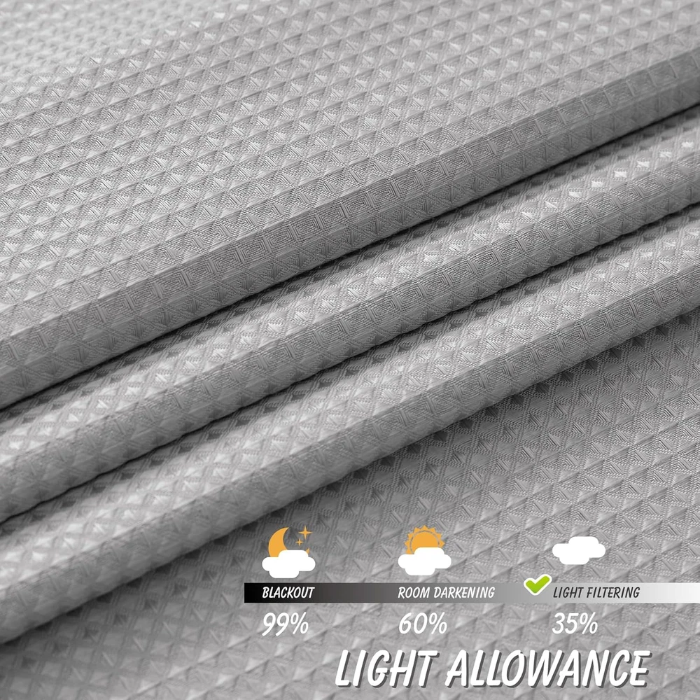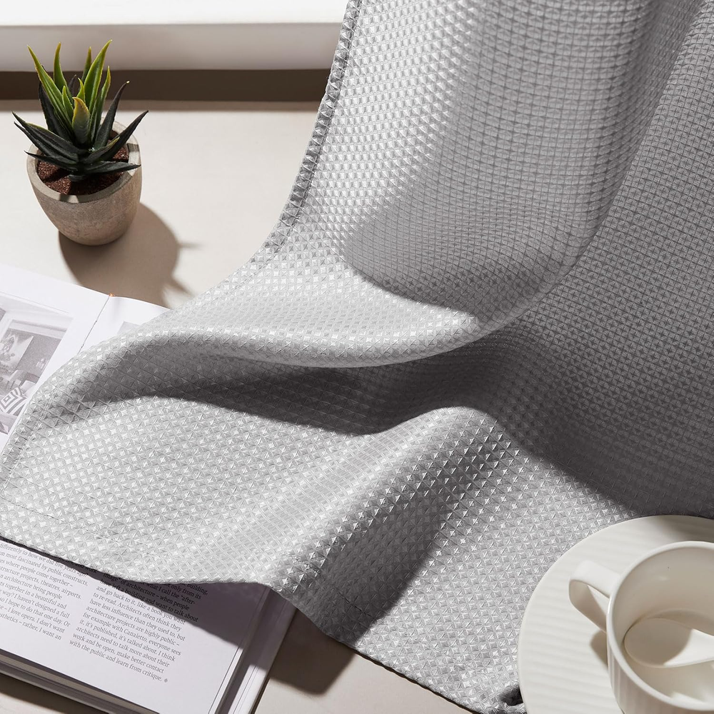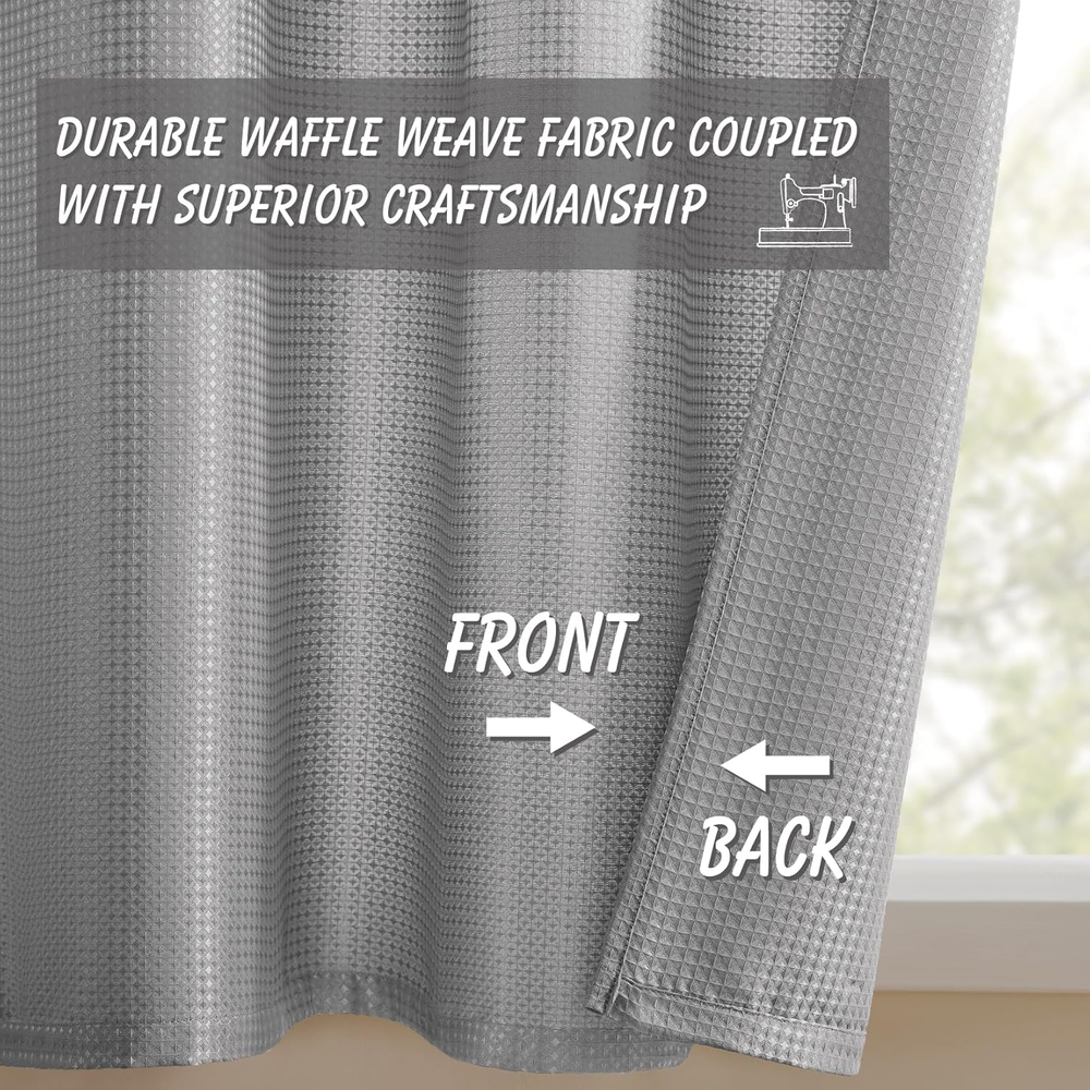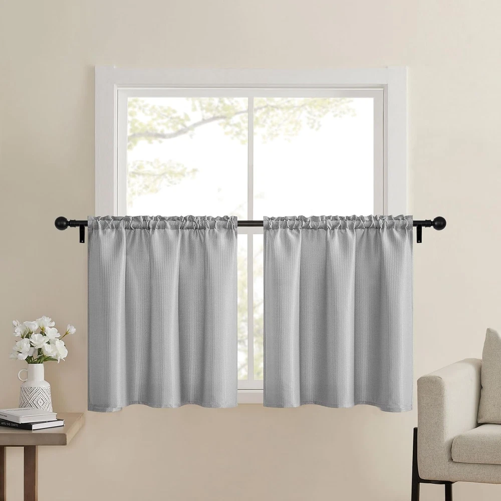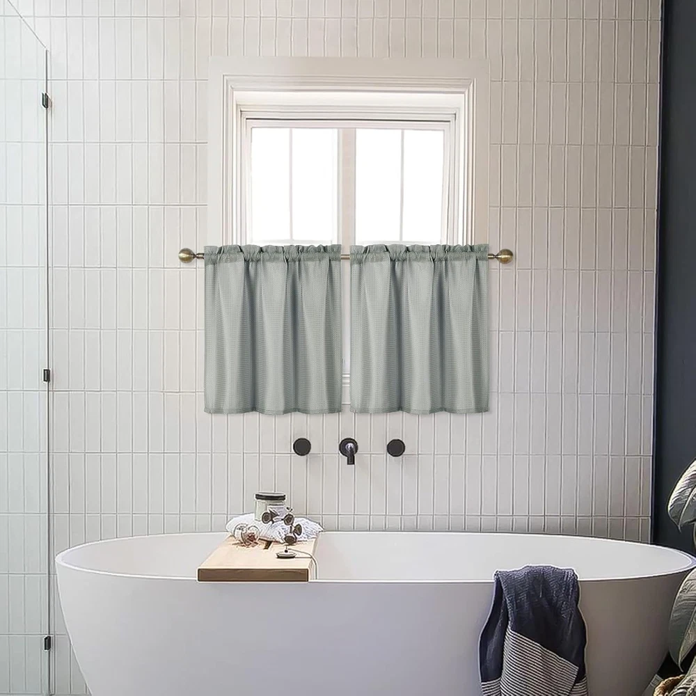Grey Waffle Weave 24x24 Water Repellent Bathroom Kitchen Curtain with Rod Pocket