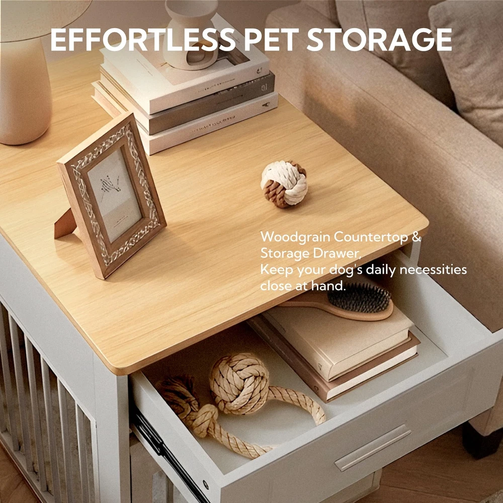 Dog Crate Furniture with Tray Features Wooden Tabletop Equipped W Sliding Doors
