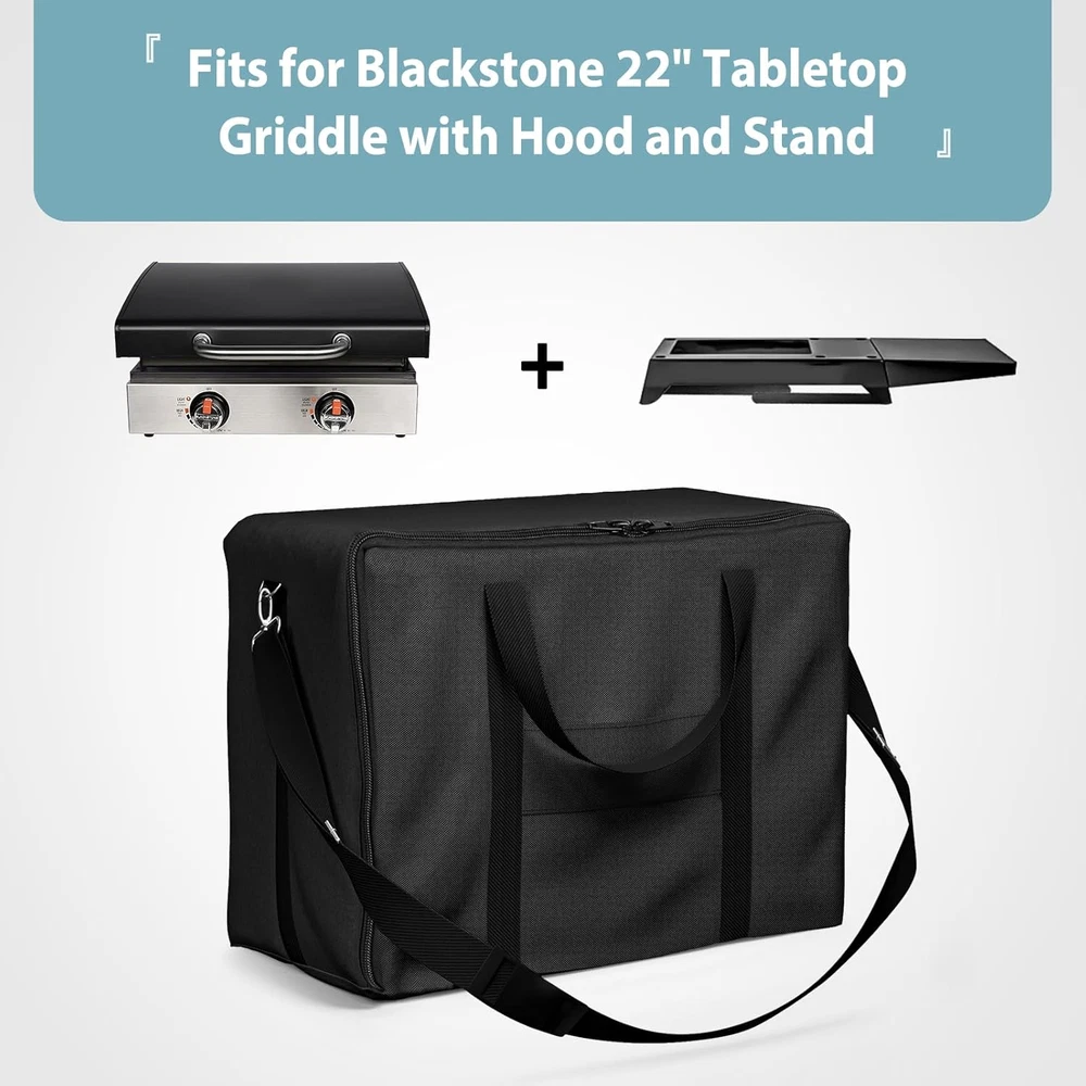 Griddle Carry Bag Heavy Duty 600D Waterproof for Blackstone 17 22 Inch Tabletop Perfect Fit: Our carry bag fits for Blackstone 17" 22" tabletop griddle with hood and stand, such as Adventure Ready Model 1891, 1832; 22" Tabletop Griddle Model 1813, 1833 1666; 17" Tabletop Griddle Model 1650, 1971,1814, etc. 25"W x 14"D x 21"H Portable: Easily carry the grill with the bag for convenient transport during vacations, camping, picnics, or other outdoor activities Quality Bag: Made of heavy-duty 600D fabric with a UV-resistant and waterproof coating, it can withstand harsh outdoor weather conditions Shoulder Strap: Equipped with shoulder straps that can bear up to 70lbs and increase the force area, making it easier and safer to carry for a long time Two-way Zippers: Upgraded zipper switch provides easy access to the grill, while the stronger zipper puller is more sturdy Product Description SHINESTAR Griddle Carry Bag Fits up to 25"W x 14"D x 21"H grills, Replacement for Blackstone 22 inch Griddle Carry Bag Fits for Blackstone 17" and 22" tabletop griddle with hood and stand, Including model 1891, 1832, 1813, 1833, 1666, 1650, 1971,1814, etc. Warm Tips 1. Make sure your grill is completely cool before putting the cover on to prevent any potential damage. 2. Please choose the cover fits your grill properly according to the size information. 3. Clean your grill before covering it to avoid rust or other damage. Item model number 01ABA499_AM01US01 Product Dimensions 13.78 x 11.42 x 3.94 inches Country of Origin China Item Weight 2.42 pounds Style Name Carry Bag for 22" Griddle Shipping Fast shipping is very important for us. Our expedited US shipping service is FREE. Your order will be shipped within 2 business days upon full payment received. Your order will be delivered within 2-3 business days after the handling time. Warranty & Returns 30-Day FREE Return Policy offered for unsatisfactory items. Options include: Refund or Exchange for another item. Contact us Customer satisfaction is our top priority. If you encounter any issues with our product, please don't hesitate to reach out to us. We are committed to ensuring your satisfaction and will go above and beyond to assist you. Your happiness is our goal! Thank you for shopping at our store.