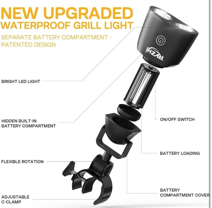 Grill Light BBQ Accessories - Grill Lights for Outdoor Grill, Grilling Smoker Accessories, Christmas Stocking Stuffers Grilling Gifts for Men Husbands, Flexible LED BBQ Light with 10 LED Beads