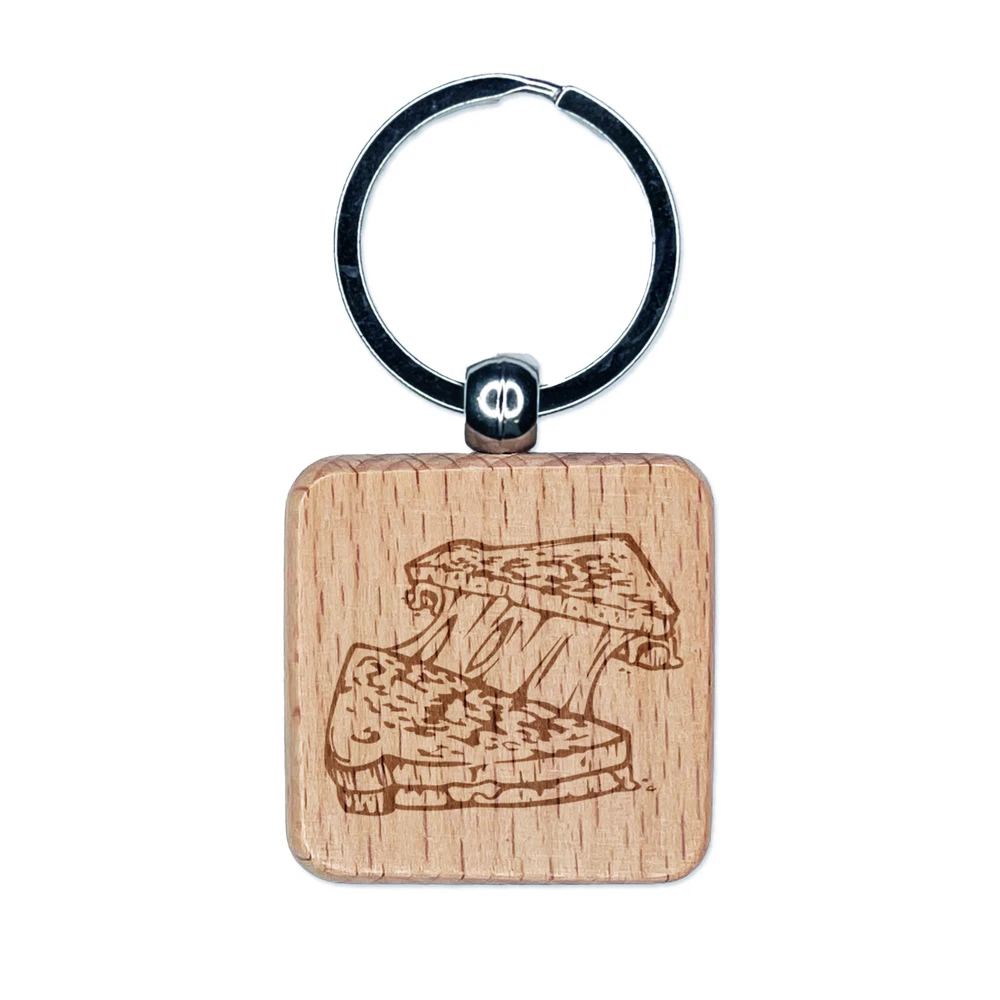 Grilled Cheese Sandwich Toast Engraved Wood Square Keychain Tag Charm