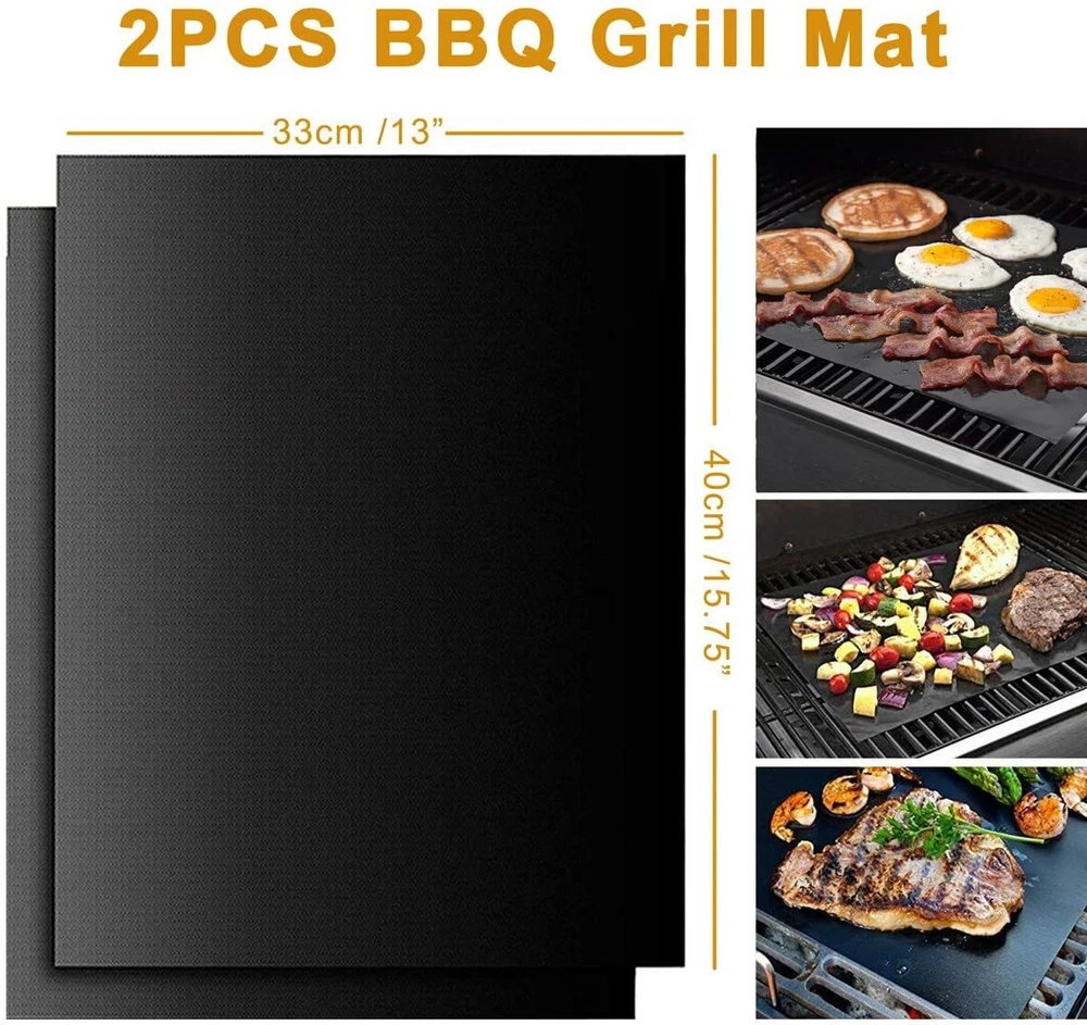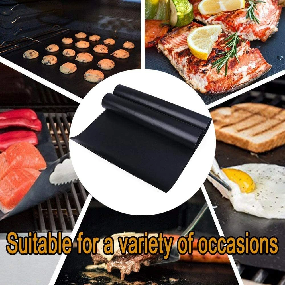 Grilljoy Grill Mat and Meat Thermometer Set. 1 Digital thermometer and 2 Barbecue mats - Non-Stick, Reusable, and Easy to Clean Barbecue Grilling Accessories · 【 CLEANLY & EASILY GRILL 】 Zero grill clean up when you're finished! BBQ Grill Mats completely solve your worry over cleaning grill grates. Keep your food from falling between the grates or sticking to the grill! In no time, you'll be grilling like a pro. Reusable and dishwasher safe makes cleanup a breeze! · 【 SAFE MATERIAL 】 These premium grill toppers are made from premium heat resistant PTFE-Fiberglass coating and contain no PFOA, silicone, or other harmful chemicals. Plus, our grilling mats can withstand temperatures up to 500° Fahrenheit and will not burn. · 【 Ultra-Fast & Accurate Meat Thermometer 】 Our digital meat thermometer serves you for almost all culinary occasions: steak, BBQ, jam or icy beer, from blazing hot to freezing cold. Food probe accurate to +/-1 Degree with a wide range of -58°F to 572º F.