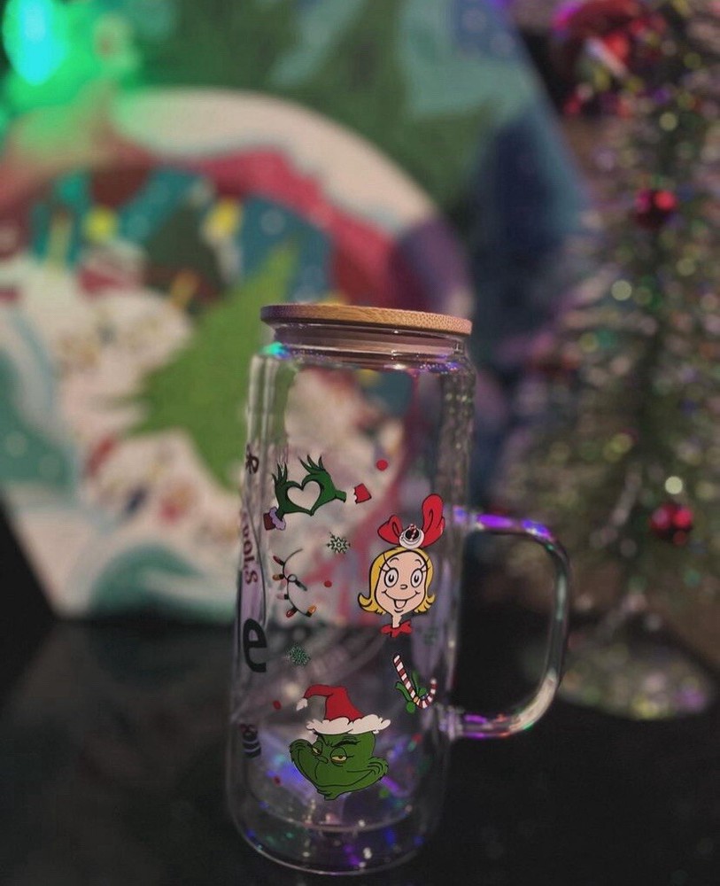 Glassware Type: Drinking Glass Character Family: Dr. Seuss Theme: Christmas, Holiday/Christmas Set Includes: Straw Material: Glass Type: Cup Occasion: Christmas Features: With Lid, With Straw, Decorated Personalize: No Color: Green Brand: grinch