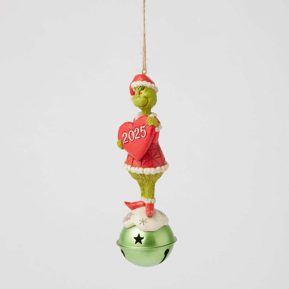 Grinch on Bell Dated 2025 Ornament Perched atop a gleaming jingle bell, the Grinch grins in his Santa suit, holding a heart marked with the year 2025. This festive Jim Shore ornament reminds us to live in the moment and create holiday moments worth remembering for years to come. Introduced: January 2025Estimated in Stock Date: 07/01/2025 Hanging Ornament5.5in HJim Shore Grinch Collection- Dated 2025 Real bellJim Shore's unmistakable style evokes a sense of nostalgia with traditional themes quilt pattern and motifs inspired by American and European folk artBeautifully hand-painted and crafted from high-quality stone resin with intricate styling and attention to detailPackaged in individual box with photo on frontProudly designed by award winning artist, Jim ShorePackaging: 1 EA Photo Gift BoxMaterial: Stone ResinMeasurements: 5.5in H x 1.57in W x 1.57in L Wt. 0.15 lbsUPC Code: 028399453368 Grinch on Bell Dated 2025 Ornament Perched atop a gleaming jingle bell, the Grinch grins in his Santa suit, holding a heart marked with the year 2025. This festive Jim Shore ornament reminds us to live in the moment and create holiday moments worth remembering for years to come. Introduced: January 2025 Estimated in Stock Date: 07/01/2025 Hanging Ornament 5.5in H Jim Shore Grinch Collection- Dated 2025 Real bell Jim Shore's unmistakable style evokes a sense of nostalgia with traditional themes quilt pattern and motifs inspired by American and European folk art Beautifully hand-painted and crafted from high-quality stone resin with intricate styling and attention to detail Packaged in individual box with photo on front Proudly designed by award winning artist, Jim Shore Packaging: 1 EA Photo Gift Box Material: Stone Resin Measurements: 5.5in H x 1.57in W x 1.57in L Wt. 0.15 lbs UPC Code: 028399453368 × × × × × × × Buy now and save! Shipping info Click the Shipping & Payments tab above the listing description for more info FREE Shipping See more... USPS First Class - $0.00 USPS Priority Mail - $7.00 Click the Shipping & Payments tab above the listing description for more info! Additional delivery notes PICK UP OPTION Sorry, our items are NOT available for pick-up. PAYMENT Immediate payment is required upon selecting "Buy It Now" or upon checking out through the cart. We accept payment via U.S. PayPal accounts and all Major Credit Cards, Debit Cards & Google Pay. We are legally required to collect sales tax in those states and localities where we maintain a physical presence (nexus). The applicable amount of sales tax charged to an order will be calculated based on the shipment destination's state and local sales tax laws. Thank you for shopping with us on eBay! Paying via Direct Deposit Simply add the freight cost to the item cost and forward the total amount to the address to be provided following your purchase. Additional Information No additional information at this time Ask seller a question You might also like Hungry Squirrel Ornament Grinch Tree Skirt 48" Snowman Travel Blanket 36 x 40" Crayola Holiday Coloring Party Contact To contact our Customer Service Team, simply click the button here and our Customer Service team will be happy to assist. Ask seller a question © William Glen Shipping & Payments Shipping is FREE for this item Payment Accepted Payment Methods Immediate payment is required upon selecting "Buy It Now" or upon checking out through the cart. We accept payment via U.S. PayPal accounts and all Major Credit Cards, Debit Cards & Google Pay. We are legally required to collect sales tax in those states and localities where we maintain a physical presence (nexus). The applicable amount of sales tax charged to an order will be calculated based on the shipment destination's state and local sales tax laws. Thank you for shopping with us on eBay! Returns Returns are accepted Items must be returned within 30 days of the auction ending Buyer will pay for return shipping. eBay integration by