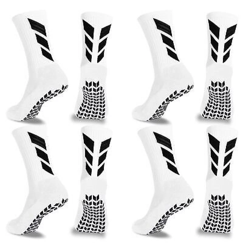 【MENDENG SOCKS】:Amazing 、Indoor antiskid、Training necessity、Sweat absorption and ventilation、Football accessories.MENDENG socks bring superexplosive power to your sports training. Novel exterior with non-slip design bring more praise to your indoor leisure. 10 out of 10! 【SOCKS SOCCER】:One size for men 6.5-11、women 8-12.5.py socks for women suit for pilates、yoga、house slippers、or any other traction sports. socks men suit for soccer、football、basketball、volleyball、hockey、baseball and so on.In addition,soccer socks can also be used as indoor per socks or hospital socks.Necessities of life and sports! 【MULTI-PURPOSE SOCCER SOCKS】:No youth can refuse a pair of anti-slip socks that can enhance explosive force and performance on the field or training ground.Non-slip socks are also the first choice for men or women who don't want to wear slippers at home.It is also a must-have for the elderly in the hospital.Best gift for family youth elderly Father's day Mother's day Thanksgiving Day! 【UNIQUE DESIGN SOCKS MEN】:Anti-slip ribbed design prevent socks slipping off.Fashion stripes enhanced arch support improved coverage.Thickened Cotton bottom provide comfort.Moisture-wicking material make training easier.Rubber dot no-slip design effective shock absorption and prevent blisters.Soccer socks youth bring unprecedented comfort to your exercise! 【MENDENG SOCCER SOCKS】:We have always been committed to bringing the best shopping experience to customers. The quality of our anti slip socks is checked at all levels. If you are dissatisfied with our non skid socks, please feel free to contact us. We will definitely solve your problem as soon as possible and adopt your suggestions into the next product upgrade. ITEM LIST: 1 set* (4 white socks)