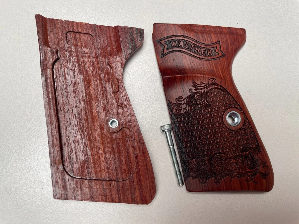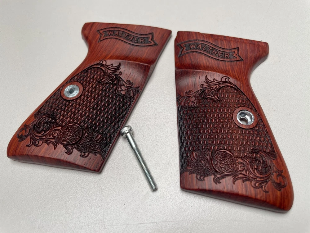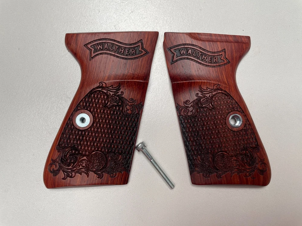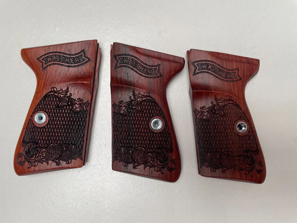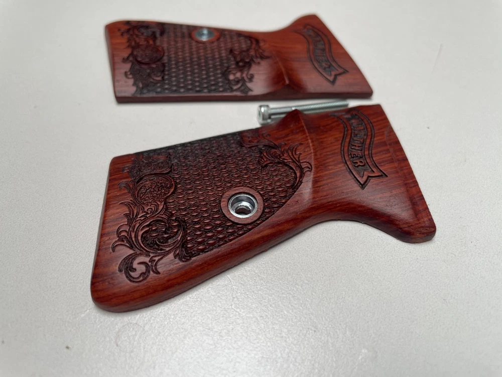 NEW GRIPS FOR WALTHER PP, PPK/S INTERARM .32/.380 ACP , 22LR CHECKERED HARDWOOD , THAI HANDMADE For Interarm & S&W manufactured ONLY Not fit Arkansas PPK/S takes the difference grips for the PPK Please note: This set is not fit for PPK (because PPK is Closed back strap we can't made them) Description Please Note; Do not buy If you not understand in variation of wood color from one piece to the next or handmade job Condition: new Material: praduak wood Quantity: 1 Set = Right and Left side of grips and screw Import duties, taxes, and charges are not included in the item price or shipping cost. These charges are the buyer's responsibility. Please check with your country's customs office to determine what these additional costs will be prior to bidding or buying. Shipping Handling WORLDWIDE. The package will be shipped directly from Thailand , and it will take about 7-15 business days . Please note: Import duties, taxes, and charges are not included in the item price or shipping cost. These charges are the buyer's responsibility. Please check with your country's customs office to determine what these additional costs will be prior to bidding or buying. 100% Satisfaction Guarantee : If you are not satisfied with the product you purchased for any reason, please contact us for a return instruction within 30 days for a refund. Shipping Handling costs are not refundable. Return shipping cost will be paid by buyer.