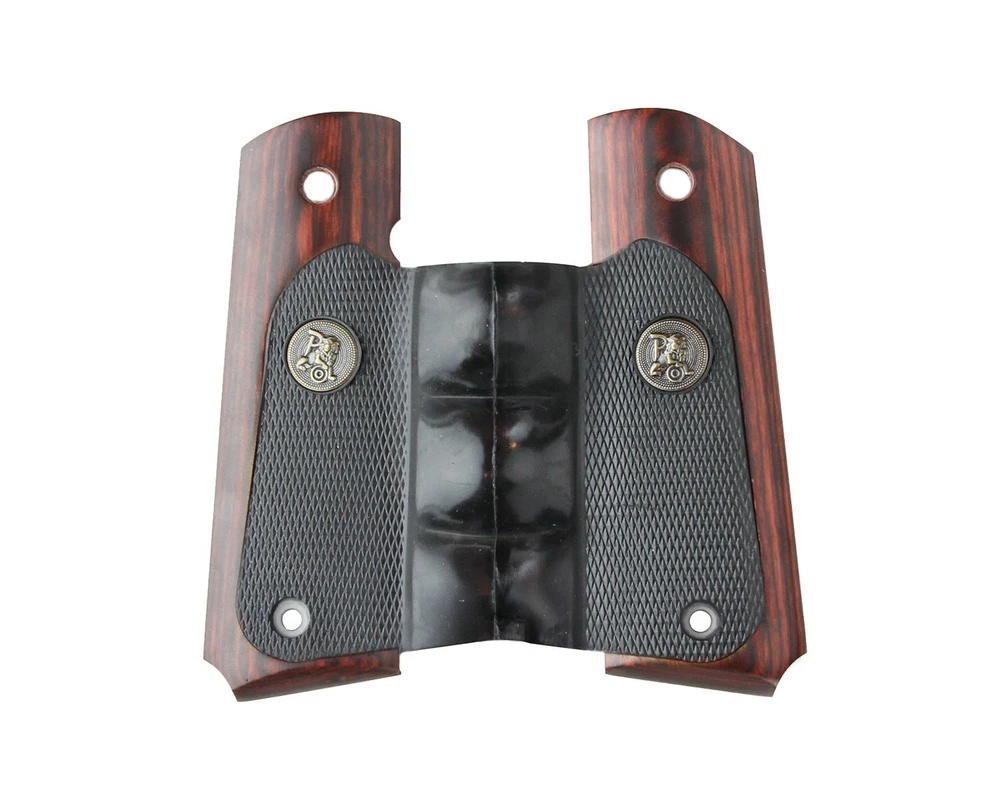 's American Legend Series offers you the best of both worlds, by combining the feel and appearance of wood with the performance, handling, and control of rubber. The American Legend Series grips feature rich walnut, finished to an attractive varnish shine coupled with our Decelerator rubber for a soft controlled feel. We did this by combining the innovative genius of , the creator of the rubber grip and the craftsmanship of American stockmakers. Together we have created the new American Legend Series. Enhance the look and feel of your grip by adding the American Legend to your Colt 1911 today. Features: - Appearance of wood - Feel of rubber. Specifucations: - Fit: Colt 1911 - Finish: Rubber Finger Grooves with Walnut Panels - Weight: 6 oz Feel and appearance of wood Performance handling and control of rubber Fits Colt 1911 and copies For Colt