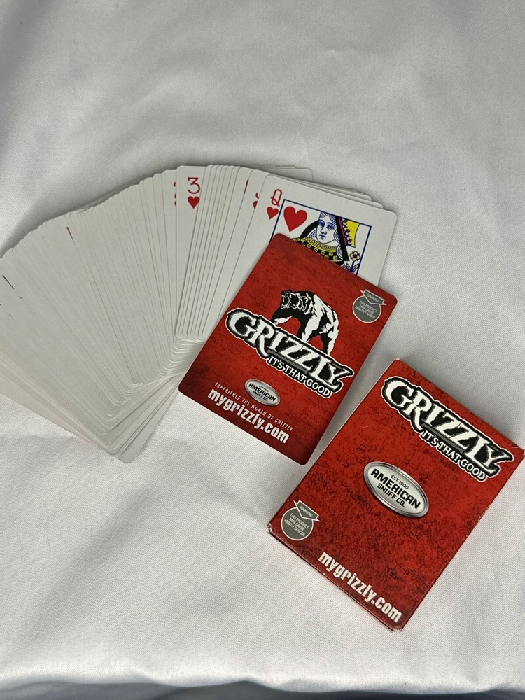 Grizzly Snuff Co. Promotional Playing Card Deck Bear Poker New in Box, complete set with jokers Smoke Free Home