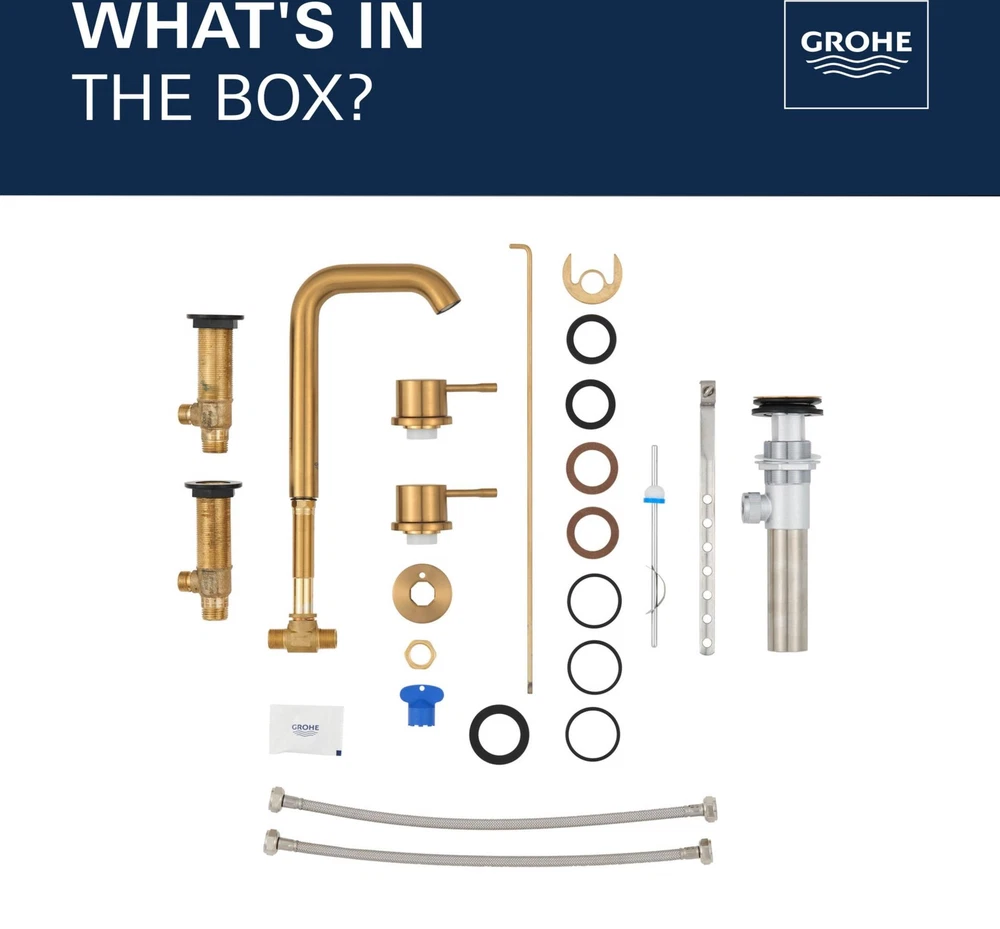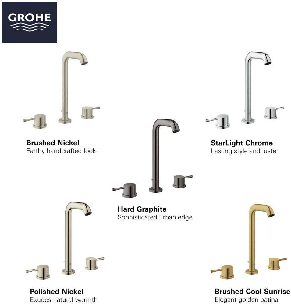 Powered by Frooition Top Products Kitchen Bathroom Lighting Fans Hardware Decor & Organization Grohe 20 297 A Essence 1.2 GPM Widespread Bathroom Faucet with SilkMove, QuickFix, and EcoJoy Technology Overview Item Description Sleek, sophisticated and available in an array of exquisite finishes, the Grohe Essence 8” widespread bathroom faucet combines distinctive style and impressive features engineered for today’s well-appointed home. Offering superior performance and lasting beauty with the durable Grohe StarLight finish, the Essence faucet embodies all the elements of precision craftsmanship and design excellence. Grohe 20 297 A Features: Faucet body constructed of metal Widespread installation – 3 hole faucet with 5-1/2" - 22-1/2" centers Grohe faucets are exclusively engineered in Germany Dual lever handle controls the flow and temperature of water Covered under Grohe's limited lifetime faucet & finish warranty Pop-up drain assembly included Grohe's AquaGuide aerator adjusts 20 - 40 degree Designed for use with standard U.S. plumbing connections ADA compliant California low flow compliant Ceramic disc valves ensure a lifetime of drip-free operation Grohe 23 538 A Technologies: SilkMove Cartridge: The rich and smooth handling of our single lever faucets conveys pure quality. As you change the temperature from hot to cold, one ceramic disc glides effortlessly across the other with absolute precision. These cartridges are manufactured in a high-tech process and feature discs made from a space-proven ceramic alloy. The SilkMove cartridge is yet another example of design and technology fusing to bring you an enhanced water experience. Starlight Finish: Continuously improving over the last 70 years Grohe's unique plating process has been refined to produce and immaculate shiny surface that is recognized as one of the best surface finishes the world over. Grohe plates sub layers of copper and/or nickel to ensure that a completely non-porous, immaculate surface awaits the chrome layer. This deep, even layered chrome surface creates a luminous and mirror like sheen. QuickFix: Precision engineering has enabled Grohe to simplify the installation process by reducing the complexity and number of parts required to fit a product. This installer-focused technology can reduce installation times by up to 50%, saving both time and money. EcoJoy: These products feature integrated water-saving technologies that restrict flow rates, allowing you to reduce water consumption without sacrificing on performance or design. The result is less environmental impact and reduced running costs. All Grohe EcoJoy products effortlessly save water and energy while delivering the perfect water flow. Grohe 20 297 A Specifications: Height: 7-5/8" (deck to top of faucet) Spout Height: 6-5/16" (deck to spout outlet) Spout Reach: 4-1/2" (faucet base to spout outlet) Flow Rate: 1.2 gallons-per-minute Faucet Centers: 5-1/2" to 22.5" (distance between centers of outside faucet holes) Maximum Deck Thickness: 1-3/16" (cannot mount on thicker decks) Faucet Hole Size: 1-5/16" Faucet Holes: 3 (minimum number of holes required for installation) Why Choose BuildInc? OUR PROMISE TO YOU About Us At Build, we promise to provide the best selection we can, most competitive pricing, and unmatched customer service. Our store has quality home improvement products from trusted manufacturers like Moen, American Standard, Delta, Kraus, Kichler, Progress Lighting, Schlage, Kwikset, Baldwin, Broan, NuTone, Air King, and Rev-A-Shelf. With over 200,000 home improvement products for you to choose from, we have just what you need to get your project done. Fast & Free Shipping We promise to make it our priority to get you your items as fast as we can. We ship from 440 warehouses around the country, ensuring that your product will get to you as soon as possible. We know you're eager to get your hands on your new purchase, we would be too. As a bonus, most items ship for free. Returns We are happy to accept returns of unused or defective items for a refund within 30 days from the date of delivery. For returns outside 30 days, please contact our Customer Service team to go over our options. For full details, please view the Shipping and Payments tab above. To initiate a return simply go to the eBay Returns Portal and submit a return request. We ask that all items be returned with all original components via a traceable method. Once your return is received and processed, we will quickly get your refund or replacement issued. If for any reason you are unsatisfied with your purchase or for product or warranty questions, please contact Customer Service team for assistance. More Items! View more great items Kingston Brass NS4460BX Water Onyx 1.2 GPM Widespread Bathroom - Black $464.72 Speakman SB-1721 Chelsea 1.2 GPM Widespread Bathroom Faucet - Chrome $364.36 Kingston Brass KB95 Magellan 1.2 GPM Mini-Widespread Bathroom - Brass $211.22 Delta 3595LF-MPU-LHP Cassidy Widespread Bathroom Faucet - Bronze $579.00 About Us | Shipping | Returns | Contact Us | FAQ | Collections | Special Offers! Powered by Frooition Frooition Frooition | No-js Template | eBay design, eBay store design, eBay shop design, eBay template design, eBay listing design (ver:froo_no_js) This listing is currently undergoing maintenance, we apologize for any inconvenience caused.