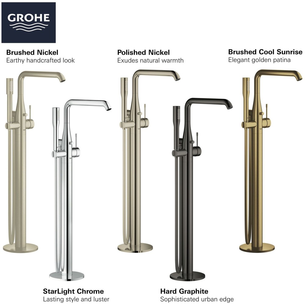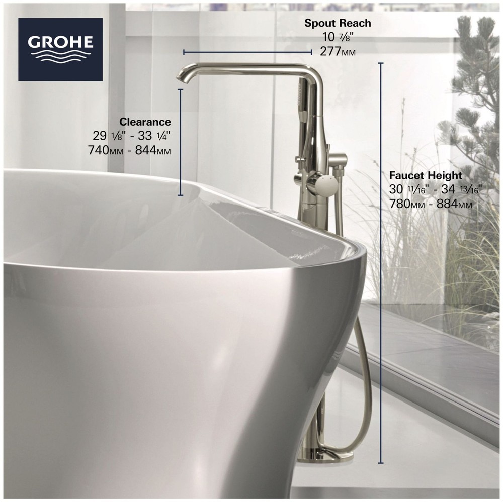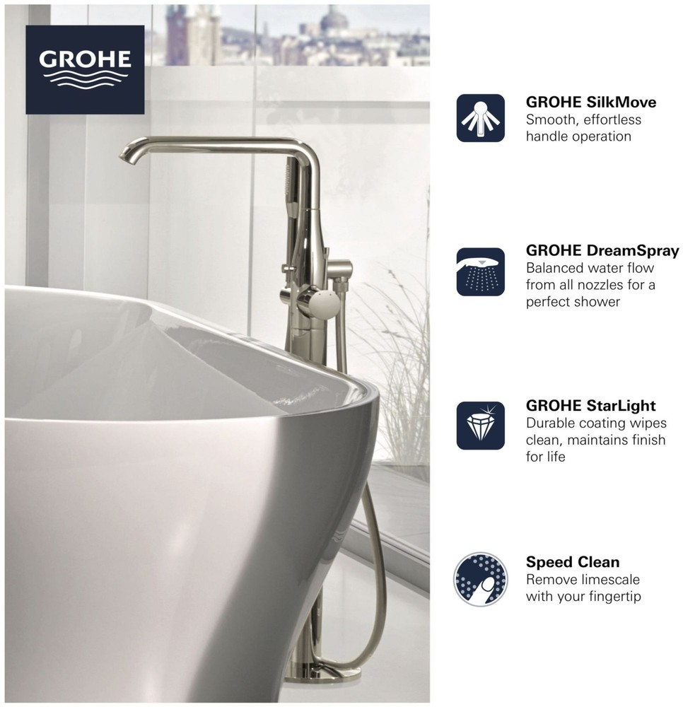Powered by Frooition Top Products Kitchen Bathroom Lighting Fans Hardware Decor & Organization Grohe 23 491 A Essence Floor Mounted Tub Filler with Built-In Diverter - Includes Hand Shower Overview Item Description Sleek, sophisticated and available in an array of exquisite finishes, the Grohe Essence floor standing tub filler with hand shower adds a distinctive touch to your freestanding bathtub. Engineered with impressive features for today’s well-appointed home, the Essence freestanding tub filler ensures superior performance with smooth, Grohe SilkMove handle operation, lasting beauty with the durable Grohe StarLight finish, and a relaxed experience with the Euphoria stick hand shower featuring Grohe DreamSpray. This contemporary tub filler embodies all the elements of precision craftsmanship and design excellence that have made Grohe the choice for discerning homeowners. Grohe 23 491 A Features: SilkMove for smooth, effortless handle operation StarLight coating wipes clean and maintains finish for life DreamSpray ensures a balanced water flow from all hand shower nozzles Includes Euphoria Cosmopolitan stick hand shower Ceramic disc valves ensure a lifetime of drip-free operation Solid brass body Metal lever handle Covered under Grohe's limited lifetime warranty Constructed of metal ensuring durability and dependability Coordinates with products from the Essence line Integrated diverter included – located on the tub spout Rough-in valve not included - when adding to cart valve options will be presented Grohe 23 491 A Technologies and Benefits: StarLight: Grohe StarLight offers a made-to-last finish. The flawless, long-lasting surface is designed to be extremely resistant to dirt and scratches, making maintenance effortless and ensuring good-as-new looks for many years. SilkMove: The Grohe SilkMove cartridge delivers gradual and precise control of the water flow and temperature. The cartridge is the centerpiece of every mixer and where the ceramic discs are located. They are made from a space-proven ceramic alloy, one gliding over the other with utmost precision. The polished mirror-like surface of the discs is then coated with a special lubricant with Teflon® technology for friction free performance. The lever handle of the mixer is connected to the discs by a solid brass element for maximum strength and durability. Grohe 23 491 A Specifications: Height: 33-3/16" (bottom to top of faucet) Spout Height: 29-1/8" (deck to spout outlet) Spout Reach: 10-7/8" (center of faucet body to center of spout outlet horizontally) Flow Rate: 5.3 gallons-per-minute Hand Shower Flow Rate: 1.75 gallons-per-minute Faucet Holes: 1 (minimum number of holes required for installation) Why Choose BuildInc? OUR PROMISE TO YOU About Us At Build, we promise to provide the best selection we can, most competitive pricing, and unmatched customer service. Our store has quality home improvement products from trusted manufacturers like Moen, American Standard, Delta, Kraus, Kichler, Progress Lighting, Schlage, Kwikset, Baldwin, Broan, NuTone, Air King, and Rev-A-Shelf. With over 200,000 home improvement products for you to choose from, we have just what you need to get your project done. Fast & Free Shipping We promise to make it our priority to get you your items as fast as we can. We ship from 440 warehouses around the country, ensuring that your product will get to you as soon as possible. We know you're eager to get your hands on your new purchase, we would be too. As a bonus, most items ship for free. Returns We are happy to accept returns of unused or defective items for a refund within 30 days from the date of delivery. For returns outside 30 days, please contact our Customer Service team to go over our options. For full details, please view the Shipping and Payments tab above. To initiate a return simply go to the eBay Returns Portal and submit a return request. We ask that all items be returned with all original components via a traceable method. Once your return is received and processed, we will quickly get your refund or replacement issued. If for any reason you are unsatisfied with your purchase or for product or warranty questions, please contact Customer Service team for assistance. More Items! View more great items Glass Warehouse 90SL-72-32 Nova 78"H x 72"W x 32"D Sliding - Brass $1,139.10 Glass Warehouse 90SL-64-36 Nova 78"H x 64"W x 36"D Sliding - Brass $1,021.61 Meyda Tiffany 97659 Fleur-de-lis 16"W Single Stained Glass - MultiColor $732.60 Glass Warehouse 90SL-48-36 Nova 78"H x 48"W x 36"D Sliding - Brass $973.02 About Us | Shipping | Returns | Contact Us | FAQ | Collections | Special Offers! Powered by Frooition Frooition Frooition | No-js Template | eBay design, eBay store design, eBay shop design, eBay template design, eBay listing design (ver:froo_no_js) This listing is currently undergoing maintenance, we apologize for any inconvenience caused.