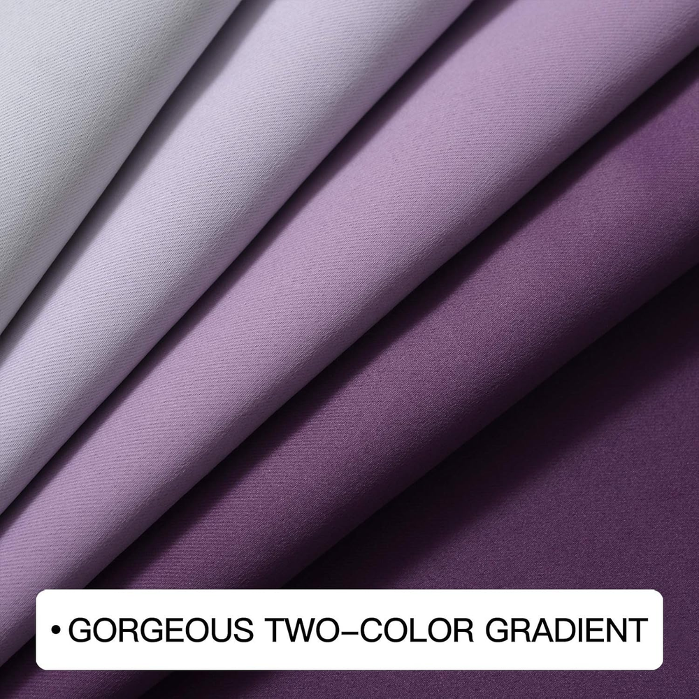 Grommet Ombre Room Darkening Curtains 63 Inch Length, Purple and Greyish White G