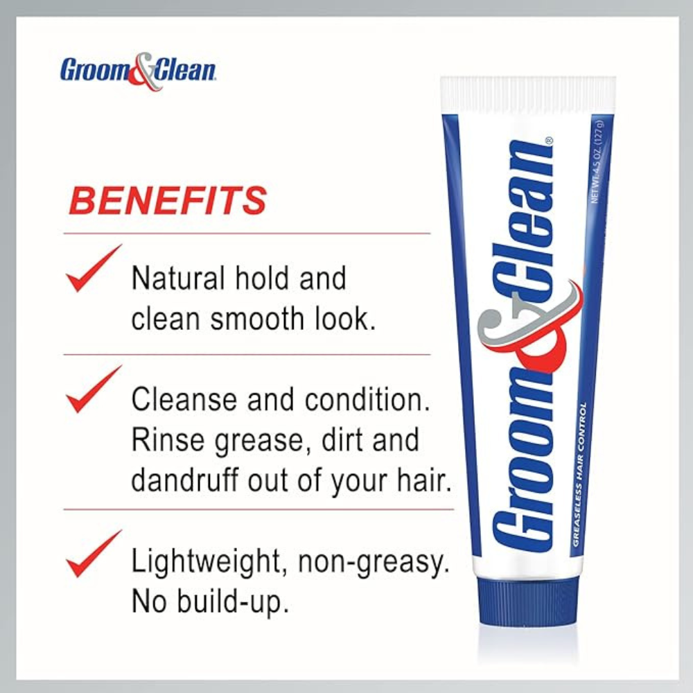 {Title} {Storehook1} Groom AND Clean Hair Styling Product Item Description **Groom & Clean Hair Styling Product - Men's Grooming Cream – Medium All-Day Hold, Greaseless Hair Control, 4.5 Oz (Pack of 2)** Elevate your grooming routine with Groom & Clean Hair Styling Product, the ultimate men's grooming cream designed to provide reliable, medium all-day hold without the greasiness associated with traditional hair gels. Ideal for all hairstyles and hair types, this versatile styling cream ensures your look stays sharp and under control from morning till night. Our grooming cream offers a medium hold that effortlessly maintains your desired style while remaining flexible enough to adjust throughout the day. Whether you’re aiming for a sleek, polished appearance or a more textured, casual look, Groom & Clean adapts to your styling needs with ease. The product's formulation ensures a natural finish, allowing you to avoid the sticky or heavy feel often found in other hair products. One of the standout features of this grooming cream is its greaseless formula. Unlike many hair gels that leave behind a greasy residue, our cream provides a clean, non-greasy look that enhances your hair's natural appearance. This greaseless formula also means you can use the product daily without worrying about buildup or excessive residue. In addition to its superior styling capabilities, Groom & Clean Hair Styling Product is easy to wash off, leaving no stubborn residue behind. This makes for a hassle-free end to your day, as the product rinses out effortlessly with water, ensuring your hair remains fresh and clean. Formulated with high-quality ingredients, including water, mineral oil, and glycerin, Groom & Clean is designed to nourish and protect your hair while delivering effective styling. The subtle masculine scent adds a touch of refinement to your grooming routine without being overpowering. With Groom & Clean Hair Styling Cream, you get a dependable, easy-to-use product that enhances your hair styling experience and delivers all-day control with a natural, greaseless finish. Payment ALL METHODS ACCEPTED BY EBAY Shipping within 6 days of payment maximum usually we ship and deliver within 3 days. Return 30 day return policy Feedback Copyright , {storeHook1} | All rights reserved.