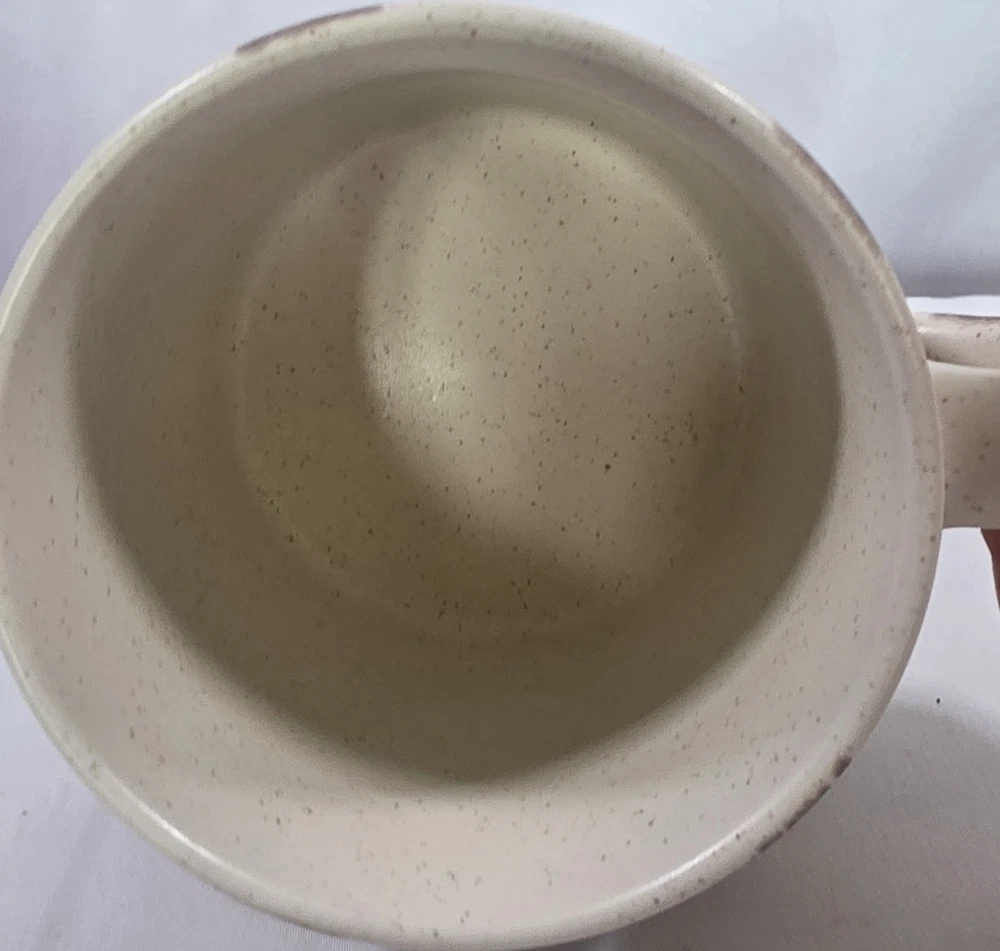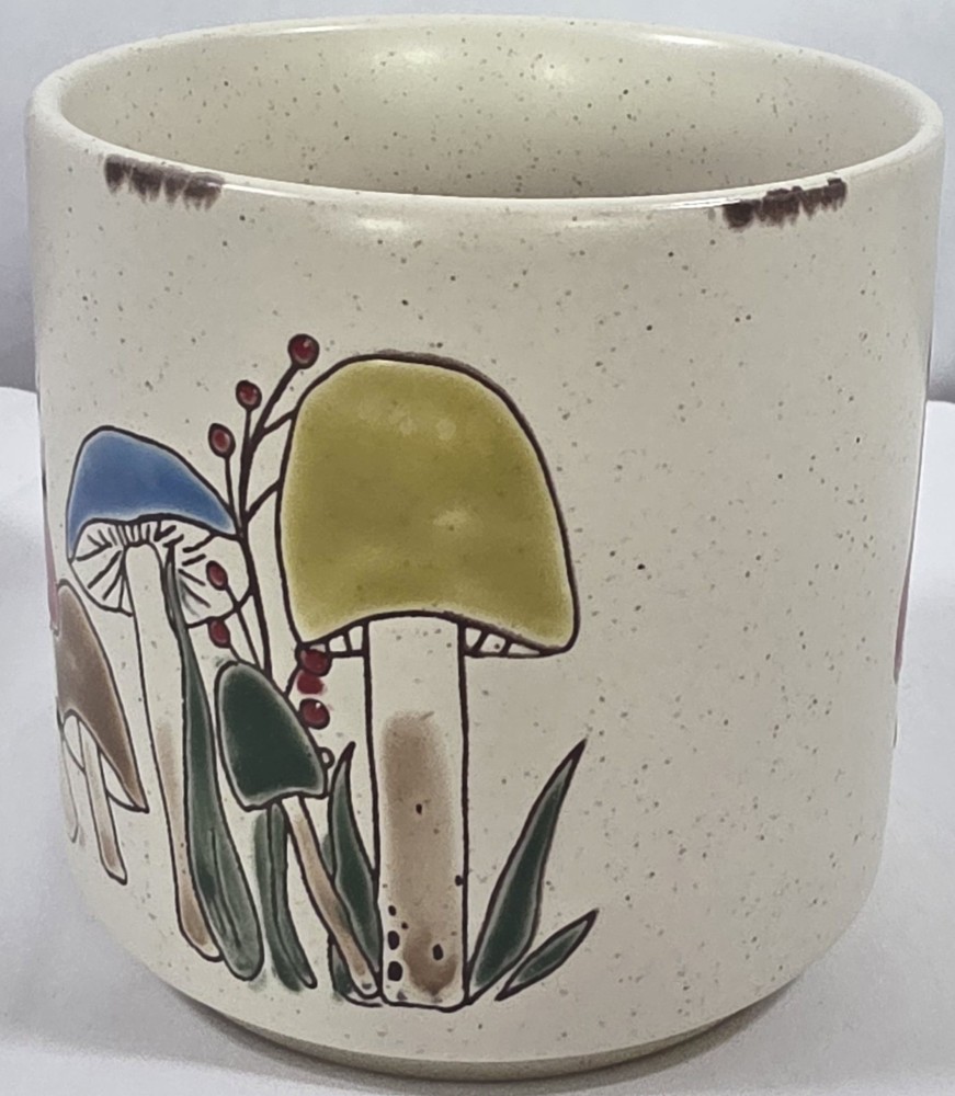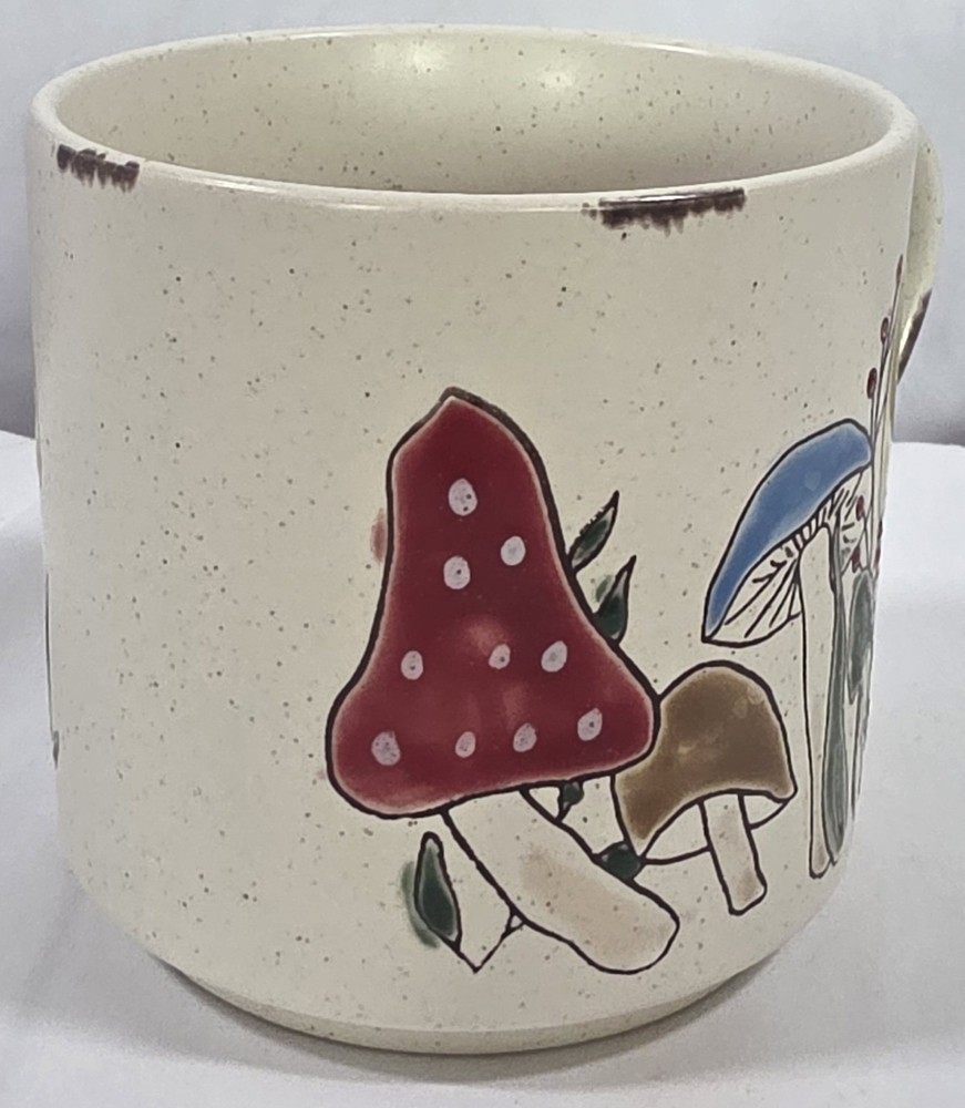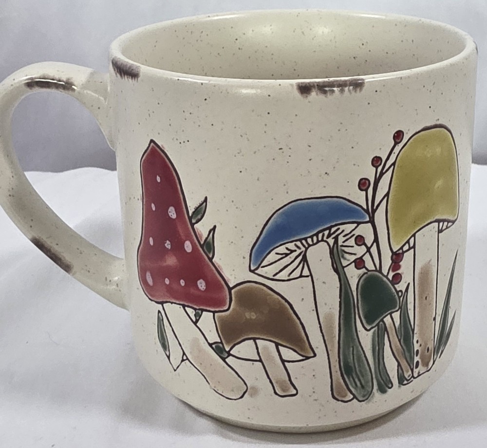 Oversized Speckled Stoneware Mushroom Coffee Mug Green Gold Groovy. Condition is Used. Shipped with USPS Ground Advantage.