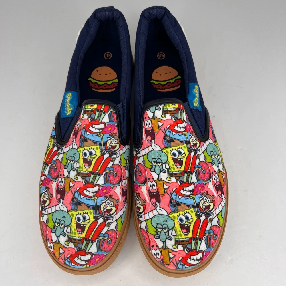 Elevate your casual look with these slip-on shoes from Ground Up. Featuring a blue canvas upper with a Spongebob SquarePants design, these shoes are perfect for any fan of the classic cartoon. The round toe and rubber outsole provide comfort and durability, making them suitable for summer, fall, and spring. These shoes are available in UK size 11, US size 11.5, and EU size 45. The insole is made of fabric and the lining is also canvas, ensuring a comfortable fit. The shoes are part of the men's casual collection and are perfect for any occasion. Add these Spongebob SquarePants slip-on shoes to your wardrobe today! 100% CUSTOMER SATISFACTION IS OUR GOAL! Our items are always carefully examined for condition, measured if necessary, and photographed in a climate controlled and smoke-free environment. We make every attempt to accurately describe and clearly picture the items we have for sale. Please, ALWAYS view all of the photos. We value your business and our goal is your complete satisfaction. FAST SHIPPING All items are packaged with care and shipped out the same or next business day via USPS, FEDEX, or UPS with tracking numbers so you are always informed. RETURNS We offer a 30-day return policy. All items must be unused and unopened in the condition in which they were received, with original packaging, and all accessories included for return. REVIEWS - CUSTOMER SATISFACTION - COMMUNICATION We aim to make you happy. After you receive your shipment, please leave a positive review . If you have concerns or questions about your order, please contact us so we can resolve the issue. We will do our best to make you satisfied. THANK YOU FOR YOUR BUSINESS!