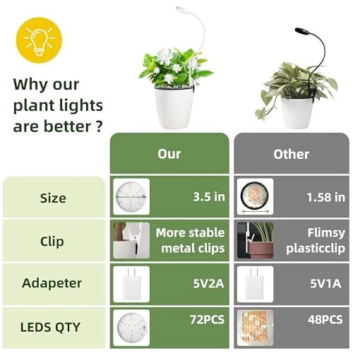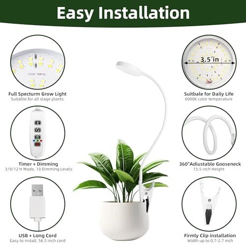 Return Policy Fast Delivery Trusted seller Grow Light for Indoor Plants Full Spectrum Plant Grow Lights 72 LED Plant Light Grow Lamp for Indoor Growing Pot Clip LED Plant Lamp (White, 1) Product Description FULL SPECTRUM LAMP: Our grow light with 36 White LEDs + 36 Warm White LEDs, it's similar to the natural daylight at noon, professionally designed for indoor plants, flowers, herbs and so on. Moreover, the light is soft and flicker-free, which is very suitable for reading lamp. AUTO ON/OFF TIMER FUNCTION: The plant grow light with automatic cycle memory timing function, can set a timer for 3/9/12 hours, the grow light will automatically at the same time every day turns on and off for 3/9/12 hours under the condition of continuous power supply, you will no longer have to worry about your plants when you are not at home. EASY TO INSTALL: Our plant grow lights with flexible thickened goosenecks and strong clamp, can easily rotate to adjust the angle between the lamp and plants, provide the best lighting angle for your plants. The clamp of the plant grow light is designed with a non-slip pad, which can fix the plant lamp well. 3 LIGHTING MODES AND 10 DIMMING LEVELS: Our grow lights for indoor plants full spectrum has 3 lighting modes (white light, warm white light and white+warm white light), please choose the lighting mode of this indoor grow light according to the growth status and environment of the plants. Moreover, our grow light provide 10 levels of light intensity to meet each plant's lighting requirements at different stages. PERFECT AFTER-SALES SERVICE GUARANTEE: If you are not satisfied with the product, please feel free to contact us, and we will provide you with a full refund. Shipping Returns Payment Shipping Shipping is FREE to all addresses other than APO/PO boxes in the lower 48 states. All our stock ships from US-based warehouses. Shipped via USPS or UPS (depending on location and package weight) Unless stated otherwise, all orders will ship within 24-72 hours of your payment being processed. Check our feedback to see the great reviews of FAST shipping we offer. Returns Seller does not accept returns Payment We currently accept payment via eBay managed payments only. Once payment is cleared, we will dispatch your shipment within 1-3 business days. Please refer to the "Shipping" tab for more information regarding shipping speed to your destination.