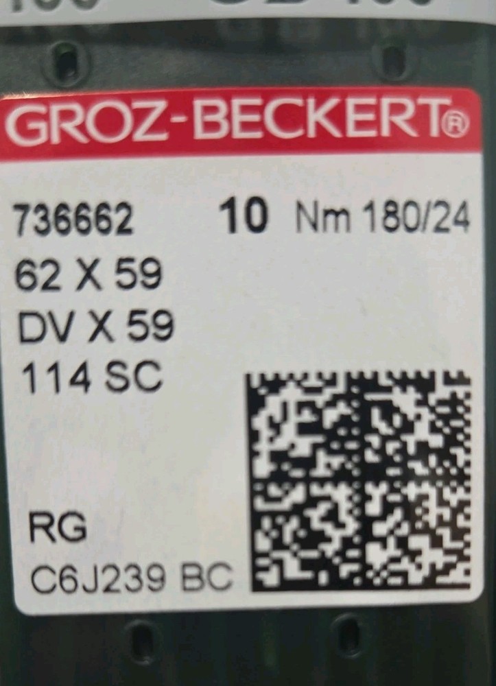 The product is a pack of 100 Groz-Beckert 62X59 DVX59 industrial sewing machine needles, specifically made by the brand Groz Beckert in Vietnam. These needles are designed for use in industrial sewing machines and are sized 736662 NM 180/24. They are durable and suitable for various sewing projects, particularly in industrial settings where high-quality materials and precise stitching are essential. Ideal for professionals in the sewing and crafting industries, these needles provide reliable performance and long-lasting use.