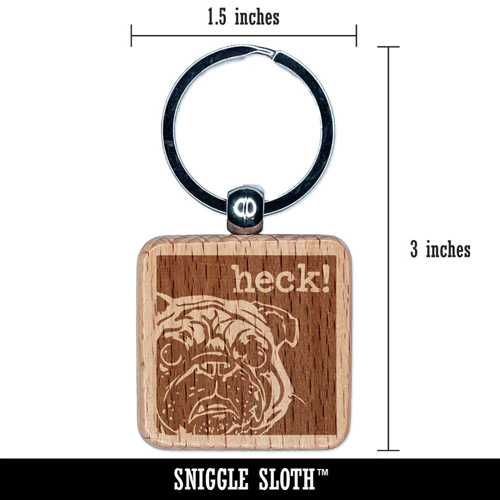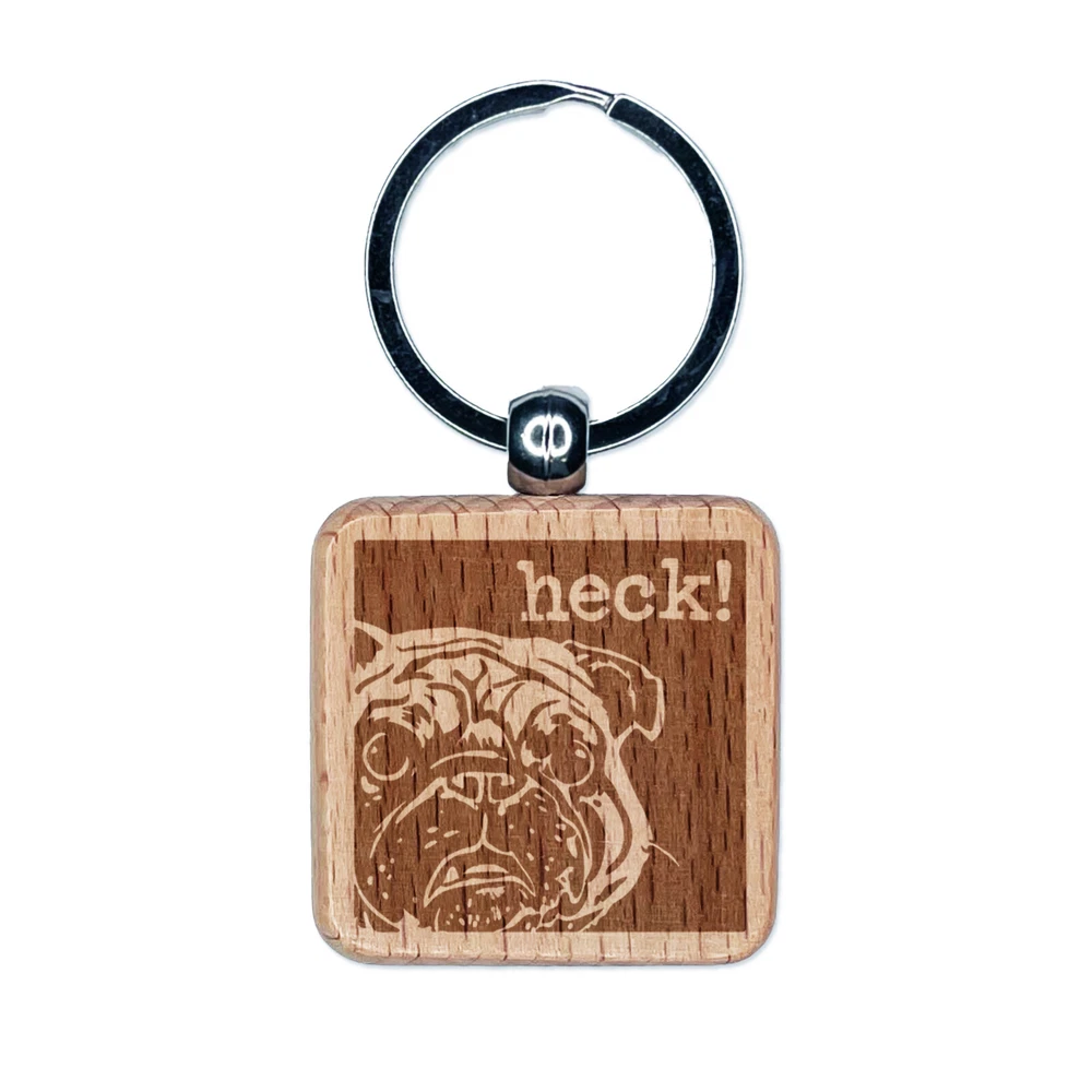 Grumpy Pug Heck Engraved Wood Square Keychain Tag Charm