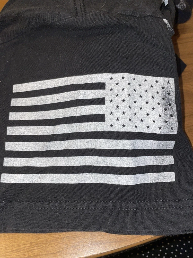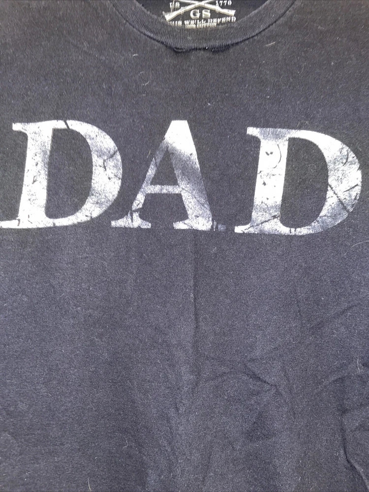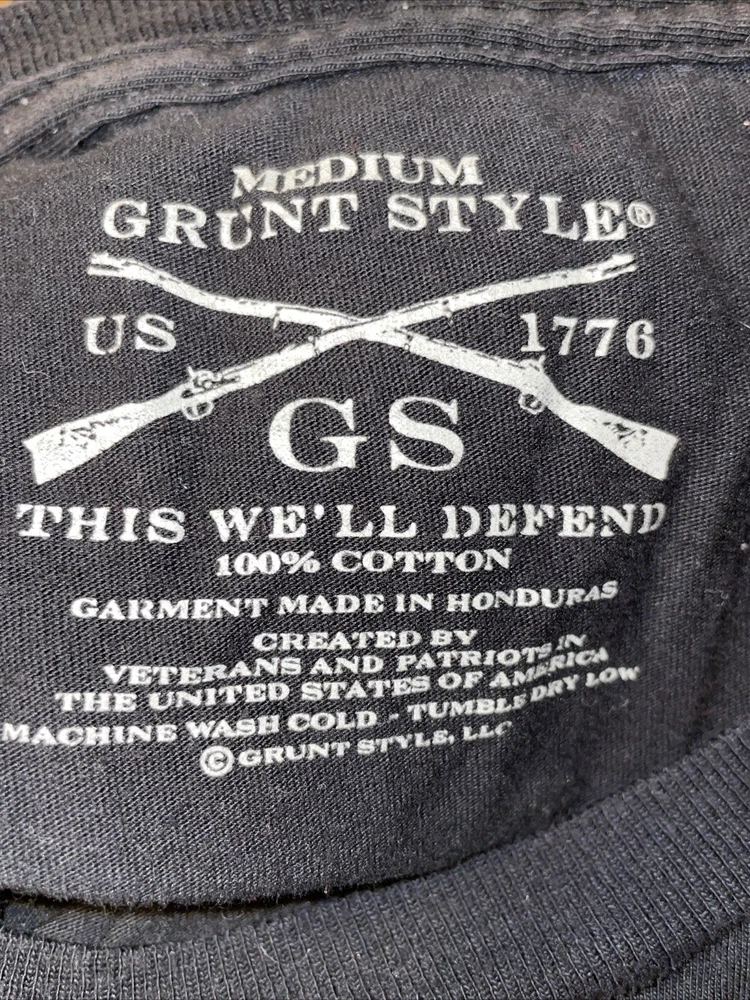 PLEASE NOTE: The graphics on these shirts are faded. Don’t know if it is intentional or not. See photos, I am picturing the most faded of the three shirts I have. Show off your patriotic side with this Grunt Style Dad Definition Patriot Shirt. The shirt features a crew neckline and short sleeves, making it perfect for all seasons. The black cotton material is machine washable for easy care, and the shirt is designed with a solid pattern and the Grunt Style logo as an accent. This shirt is perfect for any America-loving gun enthusiast and is part of the Boomstick product line. It is a regular fit size medium, and the shirt was manufactured in Nicaragua between 2010 and 2019. Don't miss out on the chance to add this patriotic shirt to your wardrobe!