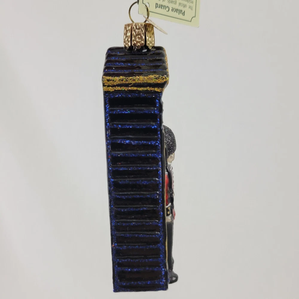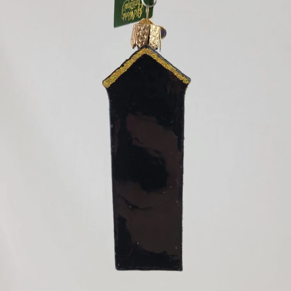 This Ornament measures 4.25" tall, 1.5" wide, and 1" deep. It has the tags, but there are a few tiny spots where the silver is showing through. See pictures for details.