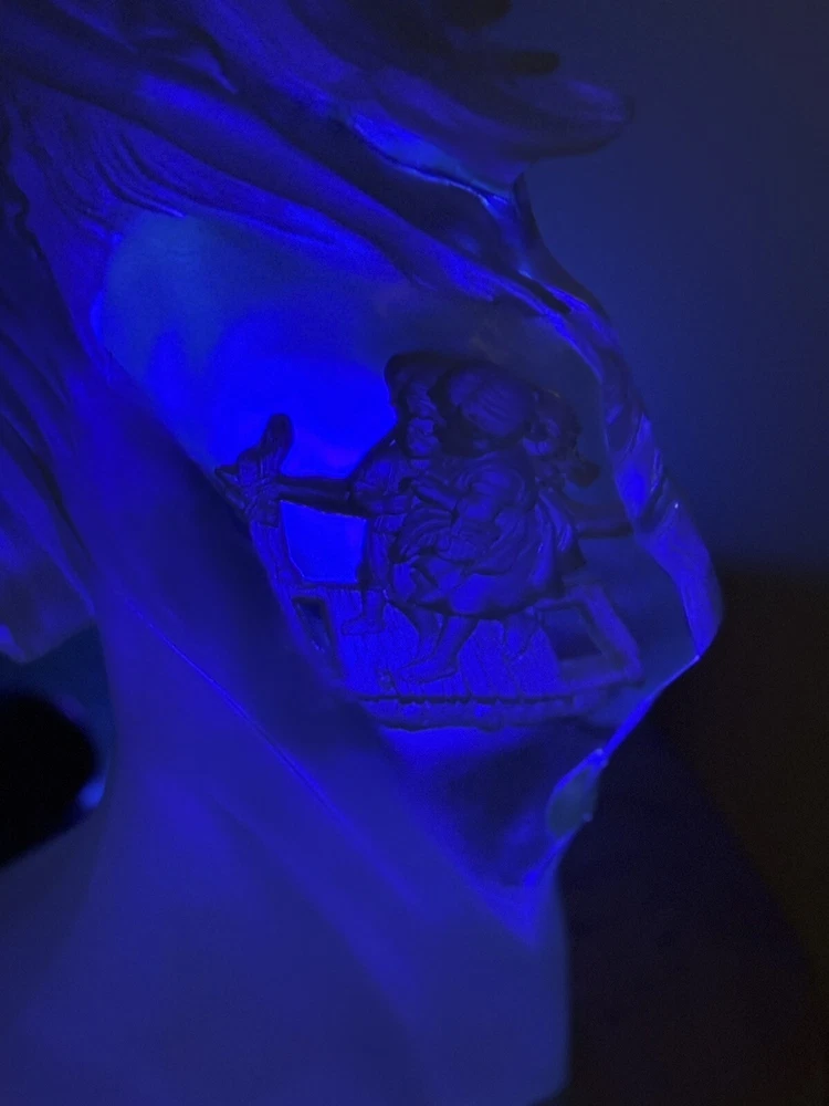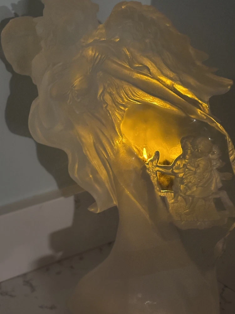 This vintage Guardian Angel statue is a beautiful addition to any room. Made from acrylic/lucite material, it features a frosted finish and a 3-D effect that adds depth to the intricate carvings. Measuring 12.5 inches in length, 12 inches in height, and 7 inches in width, this statue is perfect for teens and adults alike. The statue depicts a guardian angel watching over children, and it is waterproof, making it suitable for indoor use. The raised relief and translucent features add to the overall charm of the statue, which is ideal for collectors of angelique items. This original piece from the late 20th century is a must-have for anyone who believes in angels and wants to add a touch of religious theme to their decor. Thank you for your consideration! Returns accepted within 30 days; buyer pays return shipping