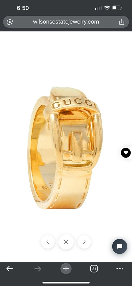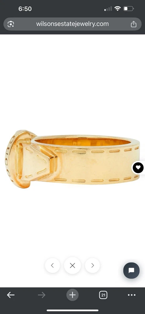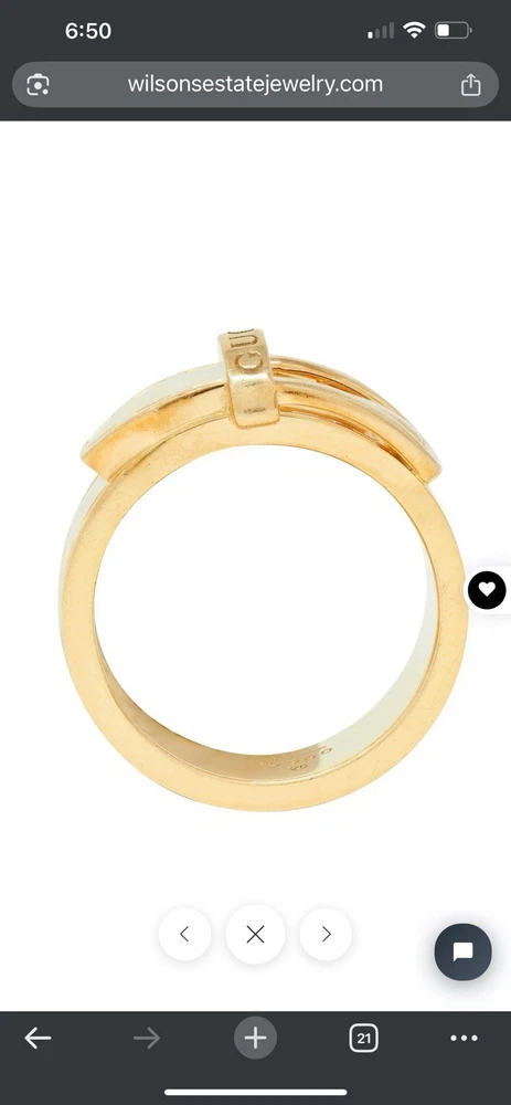 Gucci Contemporary 18K Yellow Gold Belt Buckle Ring size 6.5.