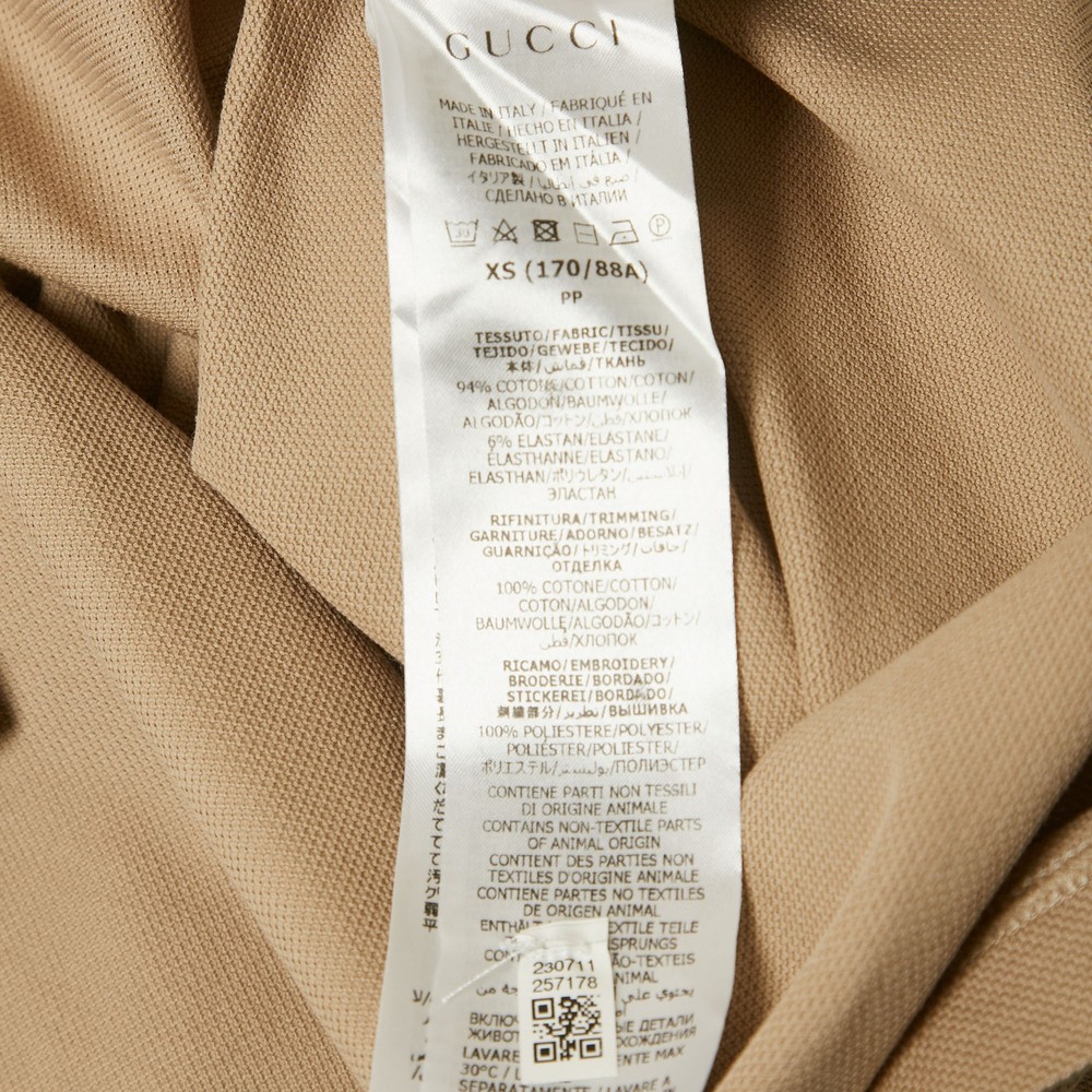 This Gucci polo in beige cotton piquet is detailed with a contrasting web collar for a subtle branded accent. A refined staple that adds quiet luxury to casual wardrobes.Certified by The Luxury Closet - This item has gone through a detailed authentication process overseen by our experts. We offer a lifetime guarantee of authenticity on all our items. Import duties, taxes and charges are not included in the item price. These charges are the buyers responsibility. Please check with your country’s customs office to determine what these additional cost will be prior to buying. Our eBay Store About Us Contact Us Add to Favorite Sellers Gucci Beige Web Collar Cotton Piquet Polo T-Shirt XS $392.7 This Gucci polo in beige cotton piquet is detailed with a contrasting web collar for a subtle branded accent. A refined staple that adds quiet luxury to casual wardrobes. Product Details Brand Color Beige Dimensions Material Cotton Size XS Outsole Width Outsole Length Heel Height Includes Certified by The Luxury Closet This item has gone through a detailed authentication process overseen by our experts. We offer a lifetime guarantee of authenticity on all our items. How We Check The in-house team of experts at The Luxury Closet is highly trained to verify the authenticity and the condition of the luxury products. They ensure that only 100% authentic items are put on sale.The evaluation process is unique with its own mix of assessment criteria and differs according to the category. Each item is evaluated based on the following combination of hallmarks, hardware, stitching, symmetry, material, craftsmanship, stamping, codes, hologram stickers, and packaging. Our authenticators also check if the items have been modified or amended (e.g., aftermarket diamonds, replaced batteries, repaired bags, etc.) International Buyers Import duties, taxes and charges are not included in the item price. These charges are the buyers responsibility. Please check with your country’s customs office to determine what these additional cost will be prior to buying.