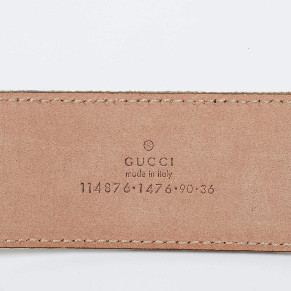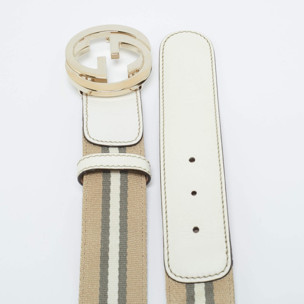 Our eBay Store About Us Contact Us Add to Favorite Sellers Gucci BeigeWhite Web Canvas and Leather Interlocking G Buckle Belt 90CM This belt perfectly embodies Gucci’s effortless sophistication and heritage style. Featuring the iconic web stripe and the Interlocking gold-tone G buckle, it adds a touch of understated luxury to any ensemble. The blend of canvas and leather ensures durability with a refined edge. A versatile piece that complements both denim and tailored looks. Product Details Brand Gucci Color Beige Includes The Luxury Closet Packaging Size 90 cm Material Canvas, Leather Certified by The Luxury Closet This item has gone through a detailed authentication process overseen by our experts. We offer a lifetime guarantee of authenticity on all our items. How We Check The in-house team of experts at The Luxury Closet is highly trained to verify the authenticity and the condition of the luxury products. They ensure that only 100% authentic items are put on sale.The evaluation process is unique with its own mix of assessment criteria and differs according to the category. Each item is evaluated based on the following combination of hallmarks, hardware, stitching, symmetry, material, craftsmanship, stamping, codes, hologram stickers, and packaging. Our authenticators also check if the items have been modified or amended (e.g., aftermarket diamonds, replaced batteries, repaired bags, etc.) International Buyers Import duties, taxes and charges are not included in the item price. These charges are the buyers responsibility. Please check with your country’s customs office to determine what these additional cost will be prior to buying.