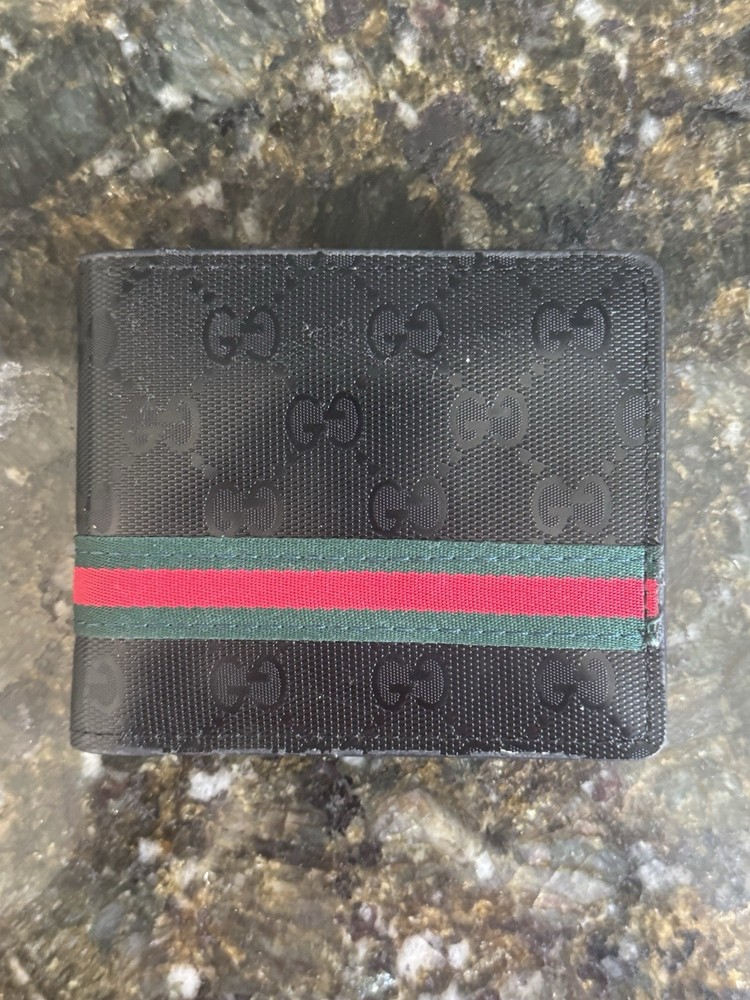 Gucci Black Bifold Wallet Logo Stripe Men's Designer Accessory
