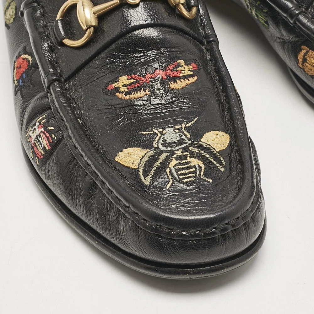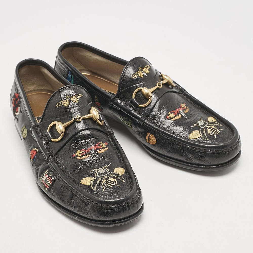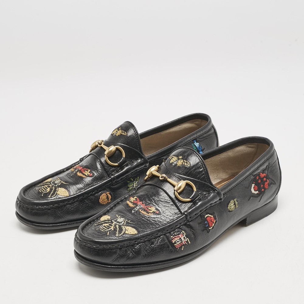 These 1953 Horsebit loafers are a tribute to Gucci’s enduring icons. Crafted in black leather with tonal embroidery, they blend subtle detailing with masculine elegance. The silhouette is classic, the finish, distinctly modern. Ideal for collectors or first timers in the Gucci universe.Certified by The Luxury Closet - This item has gone through a detailed authentication process overseen by our experts. We offer a lifetime guarantee of authenticity on all our items. Import duties, taxes and charges are not included in the item price. These charges are the buyers responsibility. Please check with your country’s customs office to determine what these additional cost will be prior to buying. Our eBay Store About Us Contact Us Add to Favorite Sellers Gucci Black Embroidered Leather 1953 Horsebit Loafers Size 40.5 $306.9 These 1953 Horsebit loafers are a tribute to Gucci’s enduring icons. Crafted in black leather with tonal embroidery, they blend subtle detailing with masculine elegance. The silhouette is classic, the finish, distinctly modern. Ideal for collectors or first timers in the Gucci universe. Product Details Brand Color Black Dimensions Material Nubuck Leather Size 40.5 Outsole Width Outsole Length Heel Height Includes Certified by The Luxury Closet This item has gone through a detailed authentication process overseen by our experts. We offer a lifetime guarantee of authenticity on all our items. How We Check The in-house team of experts at The Luxury Closet is highly trained to verify the authenticity and the condition of the luxury products. They ensure that only 100% authentic items are put on sale.The evaluation process is unique with its own mix of assessment criteria and differs according to the category. Each item is evaluated based on the following combination of hallmarks, hardware, stitching, symmetry, material, craftsmanship, stamping, codes, hologram stickers, and packaging. Our authenticators also check if the items have been modified or amended (e.g., aftermarket diamonds, replaced batteries, repaired bags, etc.) International Buyers Import duties, taxes and charges are not included in the item price. These charges are the buyers responsibility. Please check with your country’s customs office to determine what these additional cost will be prior to buying.