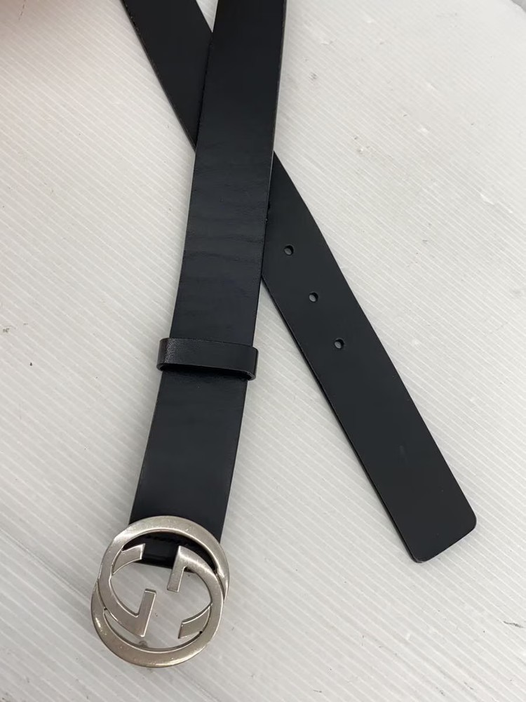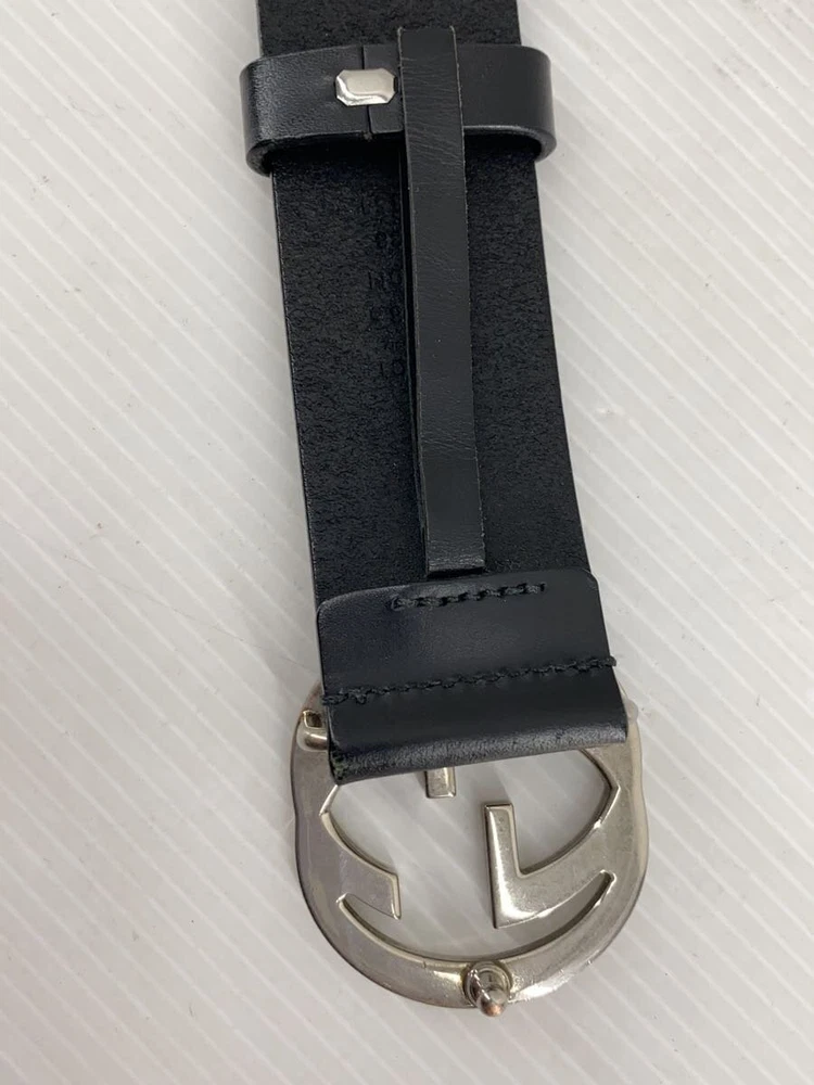 $ 165.47GUCCI Mens Black Leather Belt with Silver Buckle 414516