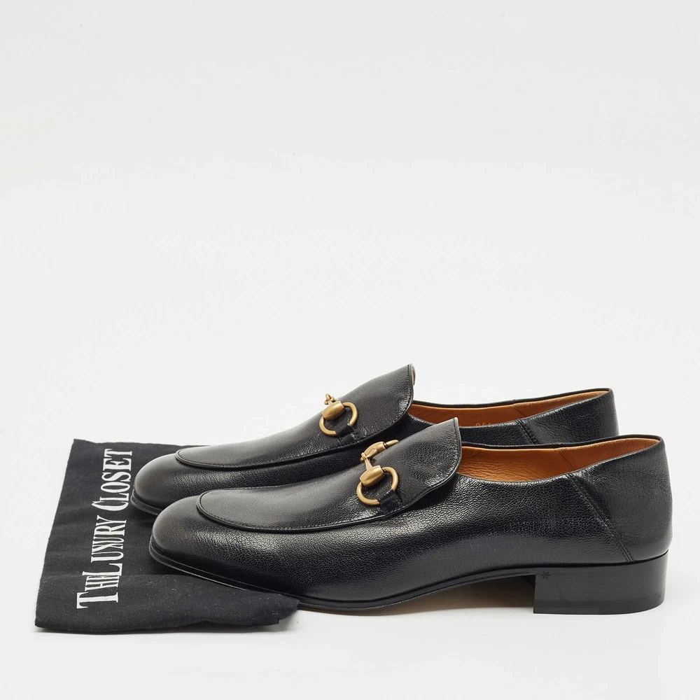 Designed for comfort and ease, Gucci’s foldable loafers in black leather feature the iconic horsebit detail. A luxurious choice for travel or business casual edits, offering flexibility without compromising on polish.Certified by The Luxury Closet - This item has gone through a detailed authentication process overseen by our experts. We offer a lifetime guarantee of authenticity on all our items. Import duties, taxes and charges are not included in the item price. These charges are the buyers responsibility. Please check with your country’s customs office to determine what these additional cost will be prior to buying. Our eBay Store About Us Contact Us Add to Favorite Sellers Gucci Black Leather Horsebit Foldable Loafers Size 42 $733.7 Designed for comfort and ease, Gucci’s foldable loafers in black leather feature the iconic horsebit detail. A luxurious choice for travel or business casual edits, offering flexibility without compromising on polish. Product Details Brand Color Black Dimensions Material Leather Size 42 Outsole Width Outsole Length Heel Height Includes Certified by The Luxury Closet This item has gone through a detailed authentication process overseen by our experts. We offer a lifetime guarantee of authenticity on all our items. How We Check The in-house team of experts at The Luxury Closet is highly trained to verify the authenticity and the condition of the luxury products. They ensure that only 100% authentic items are put on sale.The evaluation process is unique with its own mix of assessment criteria and differs according to the category. Each item is evaluated based on the following combination of hallmarks, hardware, stitching, symmetry, material, craftsmanship, stamping, codes, hologram stickers, and packaging. Our authenticators also check if the items have been modified or amended (e.g., aftermarket diamonds, replaced batteries, repaired bags, etc.) International Buyers Import duties, taxes and charges are not included in the item price. These charges are the buyers responsibility. Please check with your country’s customs office to determine what these additional cost will be prior to buying.