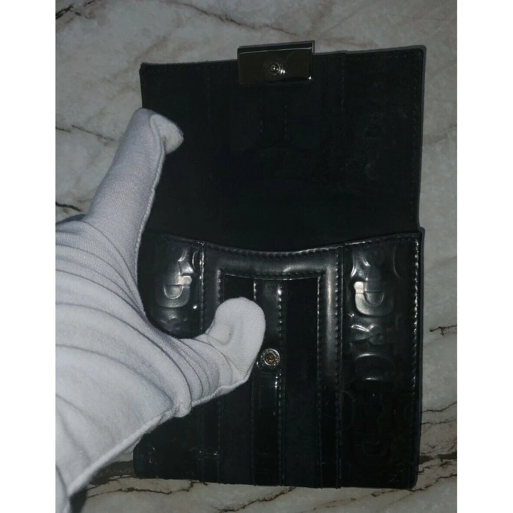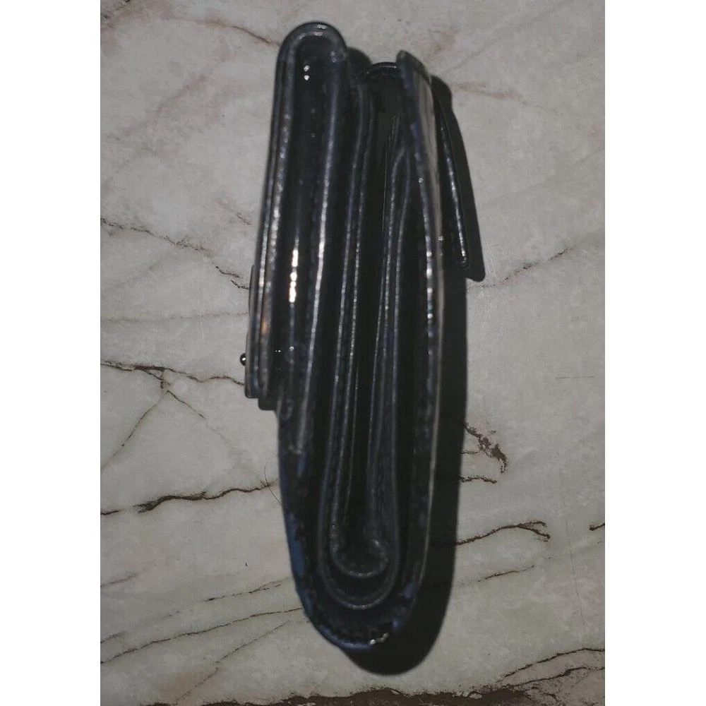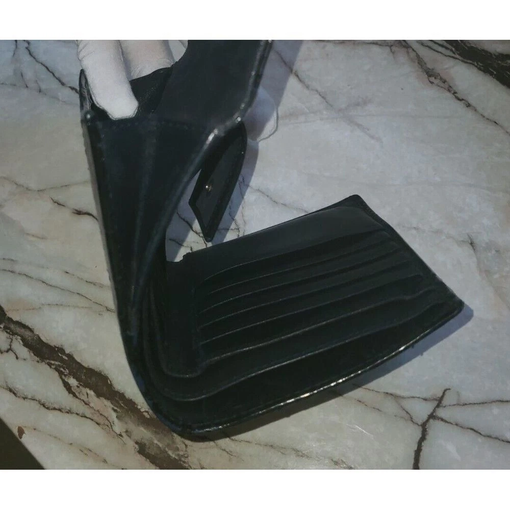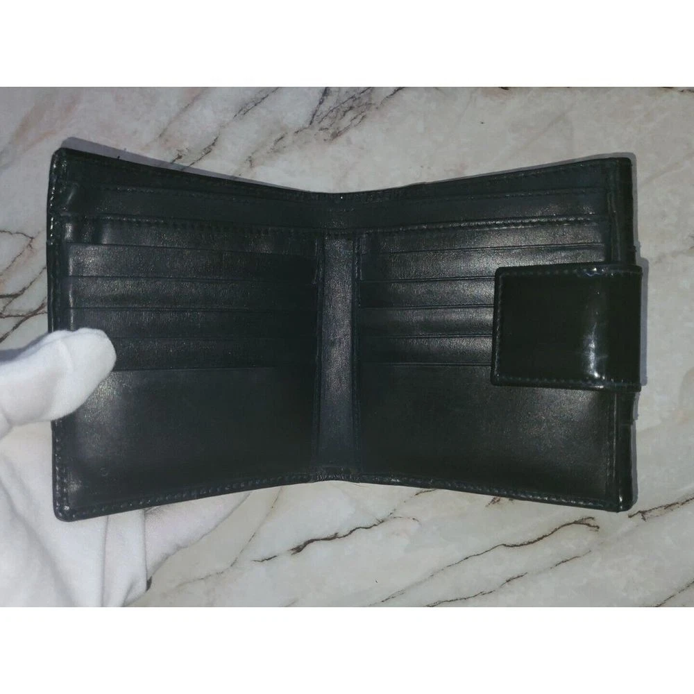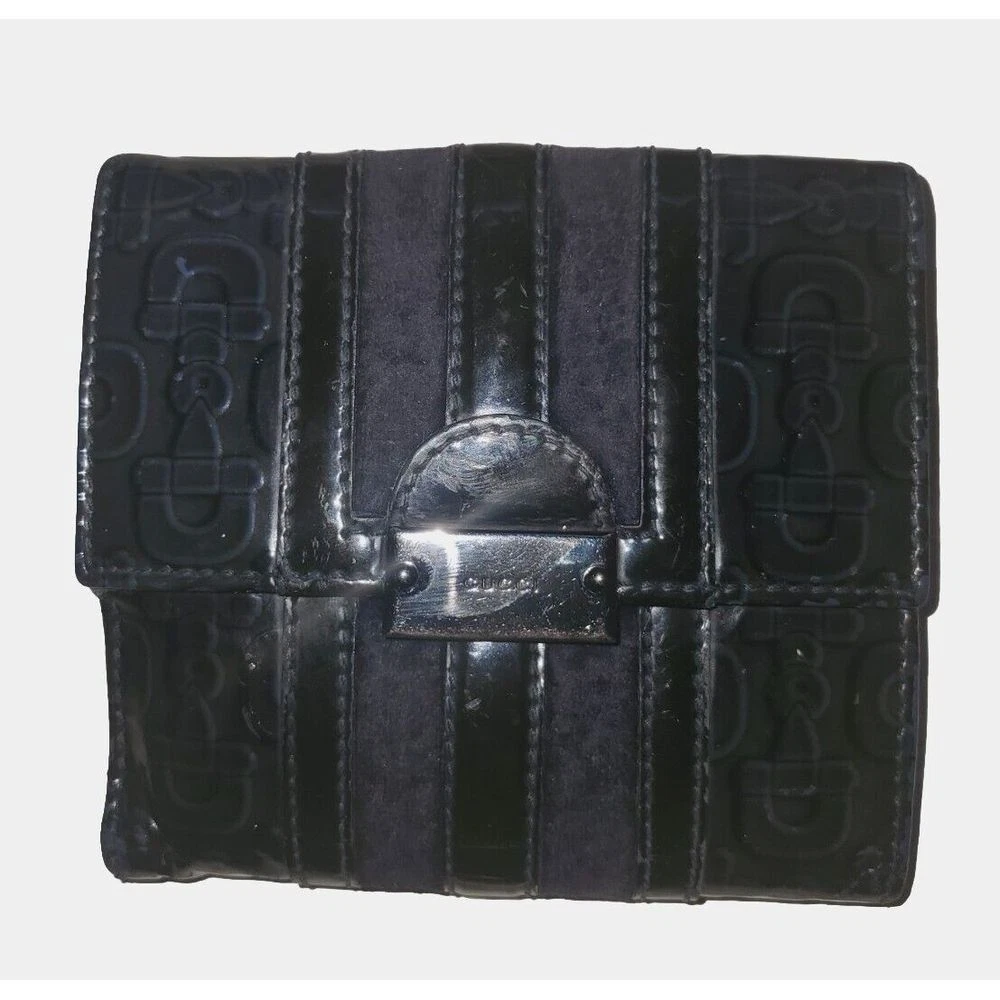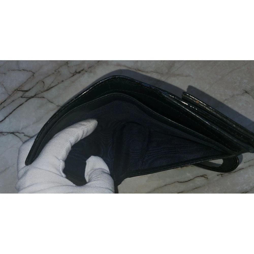 Elevate your everyday essentials with this sophisticated Gucci compact wallet. Featuring the iconic Gucci monogram pattern and sleek patent leather stripes in classic black, this wallet combines luxury with functionality. Perfect for organizing cards and cash while making a style statement. Ideal for both special occasions and daily use, this timeless piece adds elegance to any outfit. Keywords: Gucci wallet, designer wallet, black wallet, patent leather, monogram wallet, luxury wallet, compact wallet, Gucci monogram, designer accessory, black patent leather, Italian leather, luxury accessory