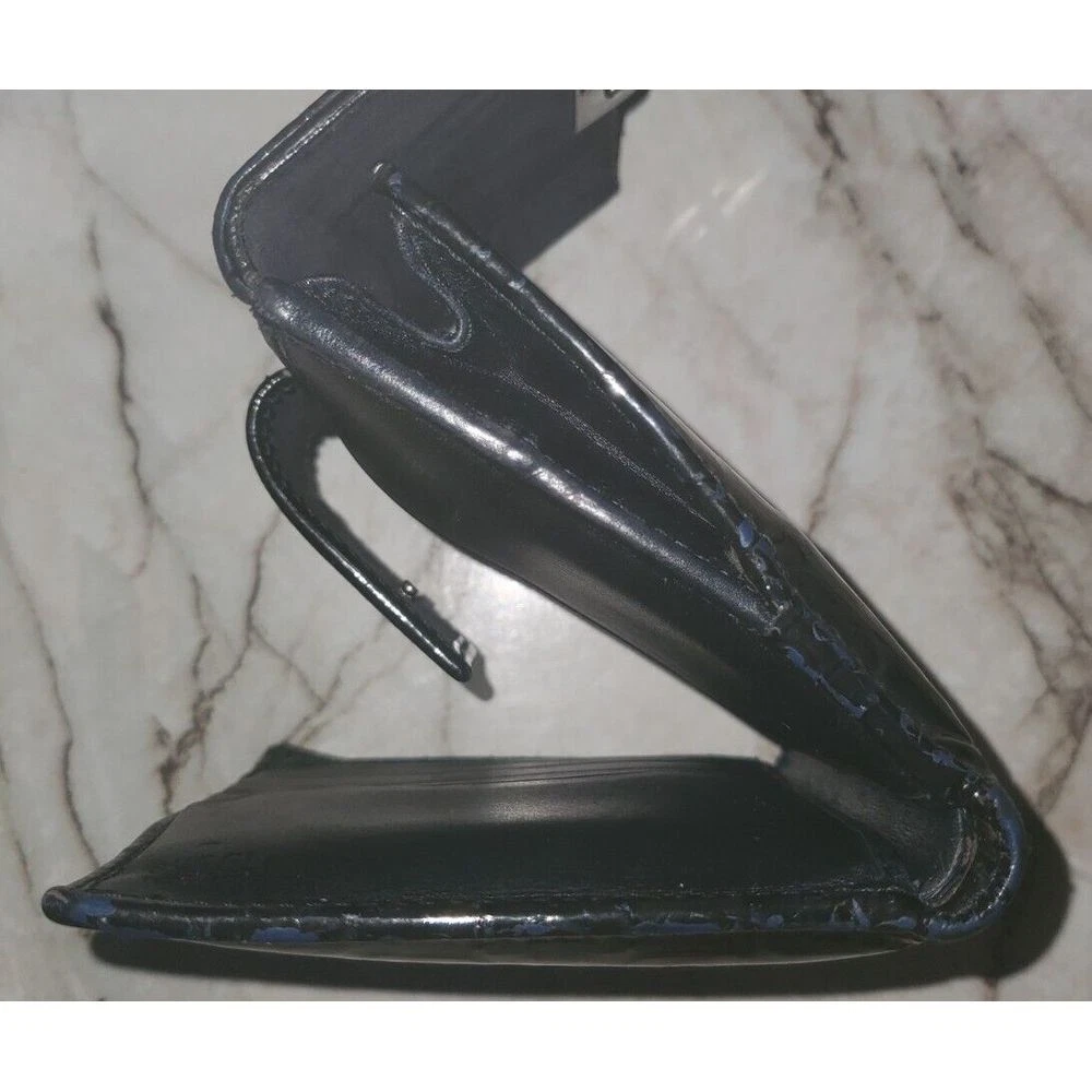 Gucci Black Patent Leather Monogram Stripe Compact Wallet