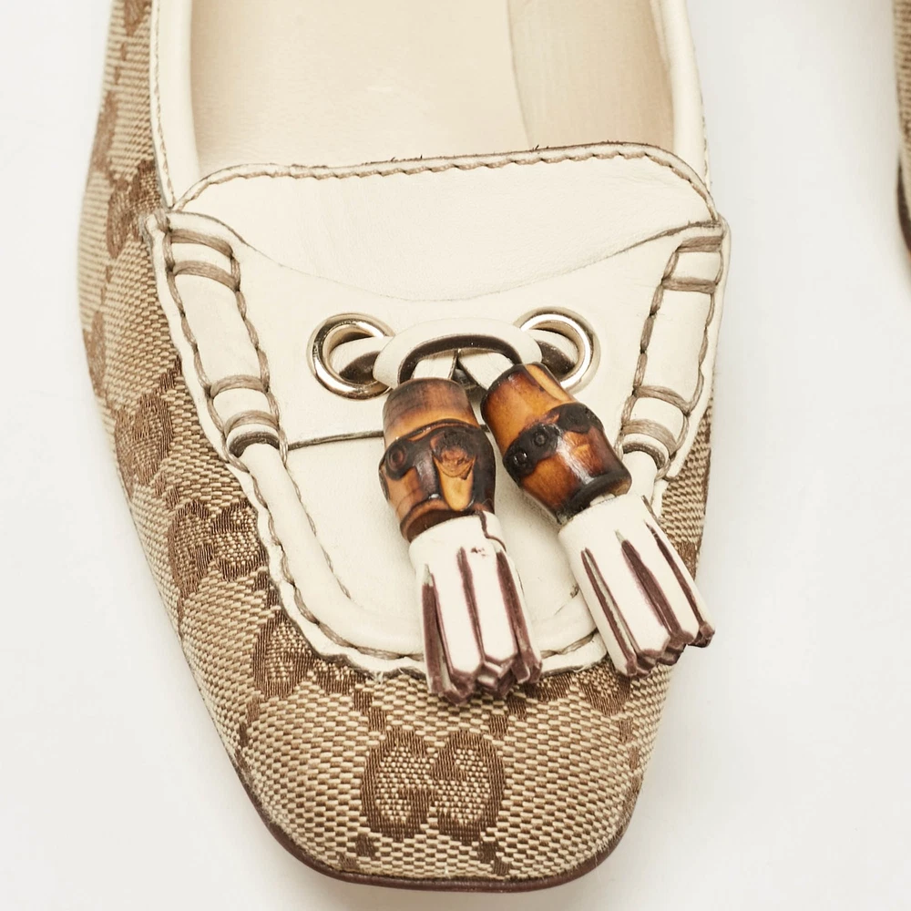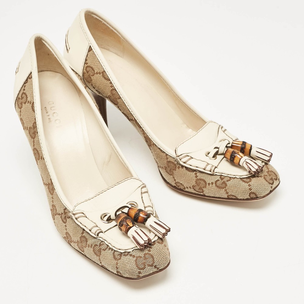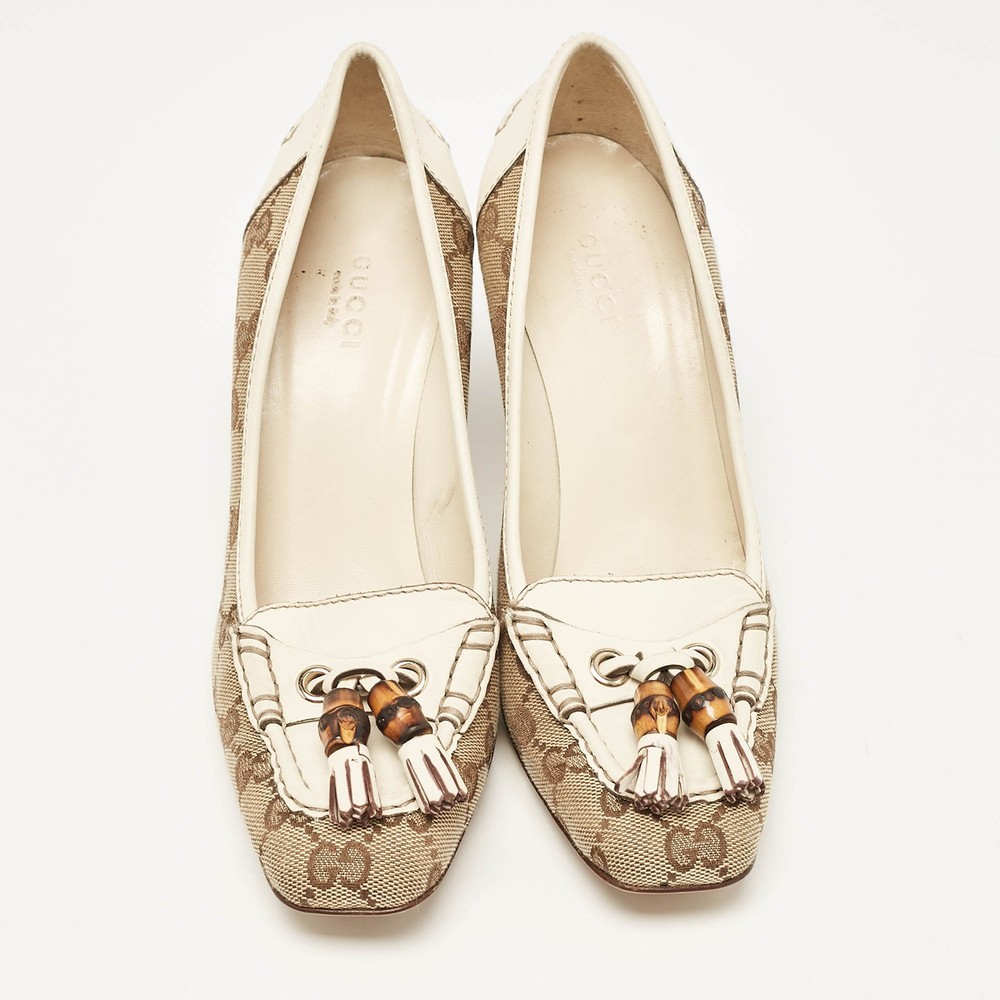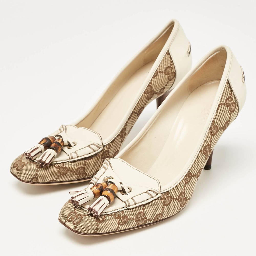 Make a statement with these designer pumps for women. Impeccably crafted, these chic heels offer both fashion and comfort, elevating your look with each graceful step.Certified by The Luxury Closet - This item has gone through a detailed authentication process overseen by our experts. We offer a lifetime guarantee of authenticity on all our items. Import duties, taxes and charges are not included in the item price. These charges are the buyers responsibility. Please check with your country’s customs office to determine what these additional cost will be prior to buying. Our eBay Store About Us Contact Us Add to Favorite Sellers Gucci Brown/Cream Monogram Canvas and Leather Loafer Pumps Size 36.5 $254.1 Make a statement with these designer pumps for women. Impeccably crafted, these chic heels offer both fashion and comfort, elevating your look with each graceful step. Product Details Brand Color Brown Dimensions Material Canvas, Leather Size 36.5 Outsole Width Outsole Length Heel Height Includes The Luxury Closet Packaging Certified by The Luxury Closet This item has gone through a detailed authentication process overseen by our experts. We offer a lifetime guarantee of authenticity on all our items. How We Check The in-house team of experts at The Luxury Closet is highly trained to verify the authenticity and the condition of the luxury products. They ensure that only 100% authentic items are put on sale.The evaluation process is unique with its own mix of assessment criteria and differs according to the category. Each item is evaluated based on the following combination of hallmarks, hardware, stitching, symmetry, material, craftsmanship, stamping, codes, hologram stickers, and packaging. Our authenticators also check if the items have been modified or amended (e.g., aftermarket diamonds, replaced batteries, repaired bags, etc.) International Buyers Import duties, taxes and charges are not included in the item price. These charges are the buyers responsibility. Please check with your country’s customs office to determine what these additional cost will be prior to buying.
