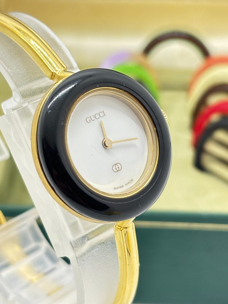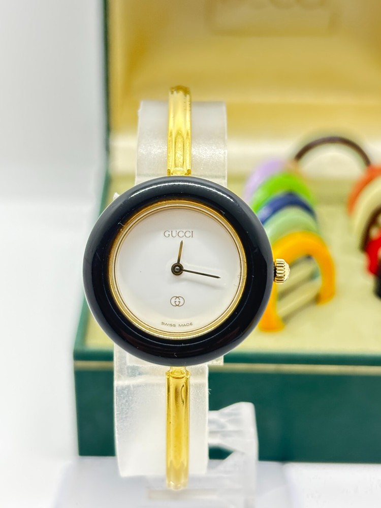 Gucci Change Bezel 11/12 Watch in 11 Gold Colors Used Working Exc+5 Condition with Box