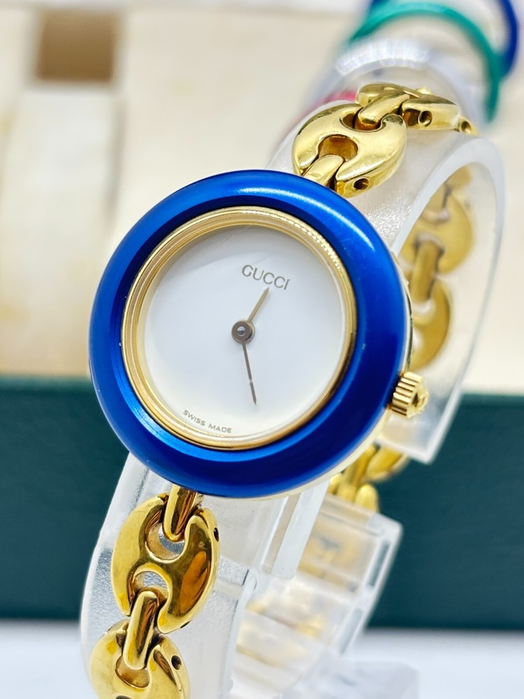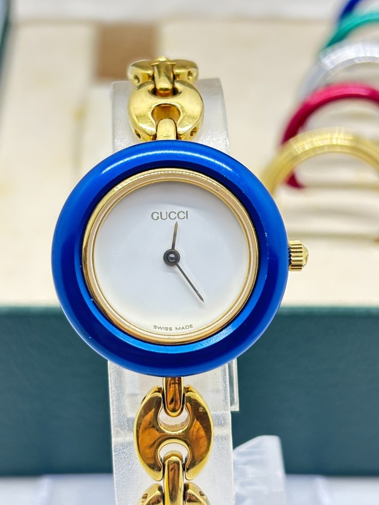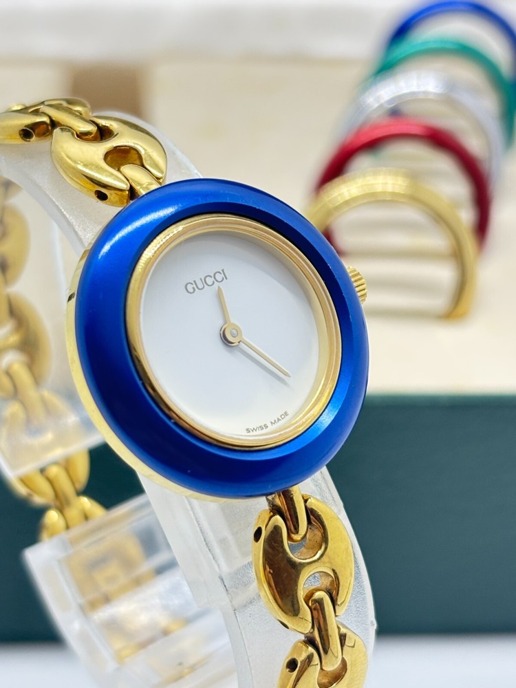 Gucci Change Bezel Gold Watch 6 Colors Working with Box Near Mint