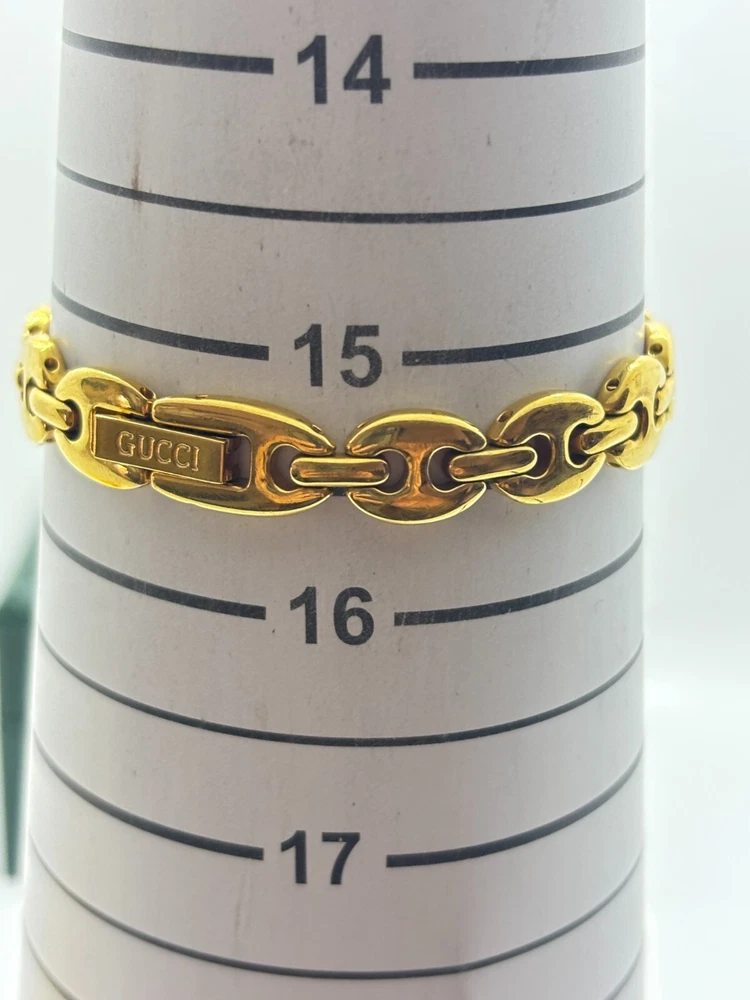 Display: Analog Department: Women Band Color: Gold Movement: Quartz Bezel Color: White gtin13: Does not apply Country/Region of Manufacture: Japan Model: 11/12 Case Material: Stainless Steel Dial Color: Gold Closure: Buckle Year Manufactured: 1980-1989 Type: Wristwatch UPC: Does not apply Seller Notes: “Please see photos and description.” Band Material: Stainless Steel Max Wrist Size: 15.5cm Band/Strap: Bracelet Case Color: Gold Reference Number: 11/12.2, 11ŒŽ12Ú Brand: Gucci