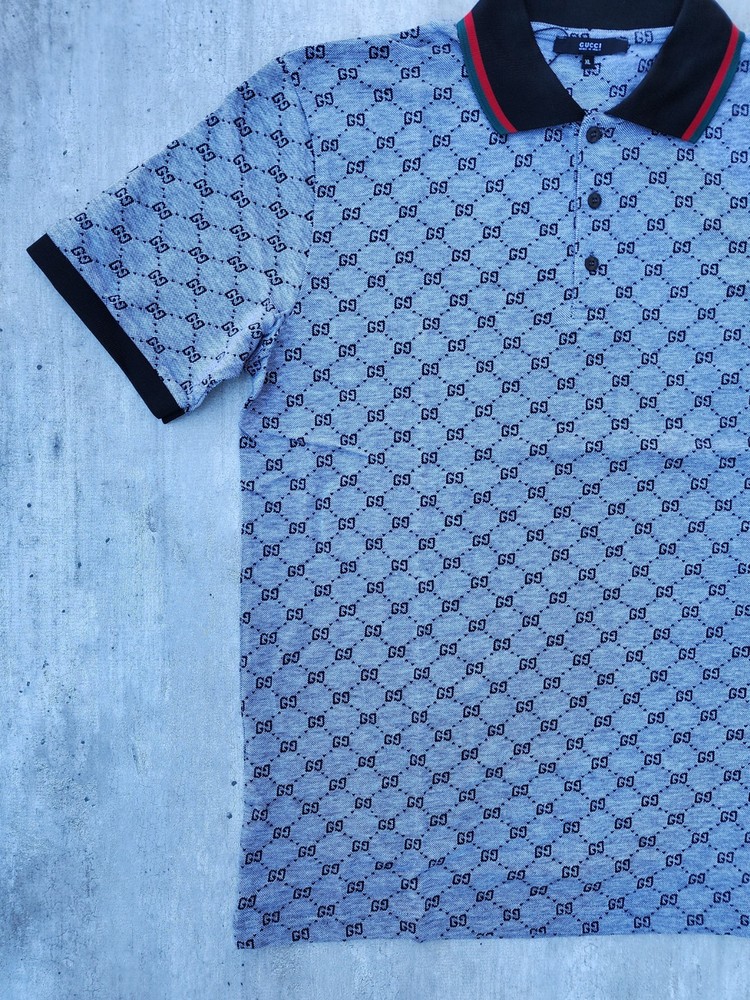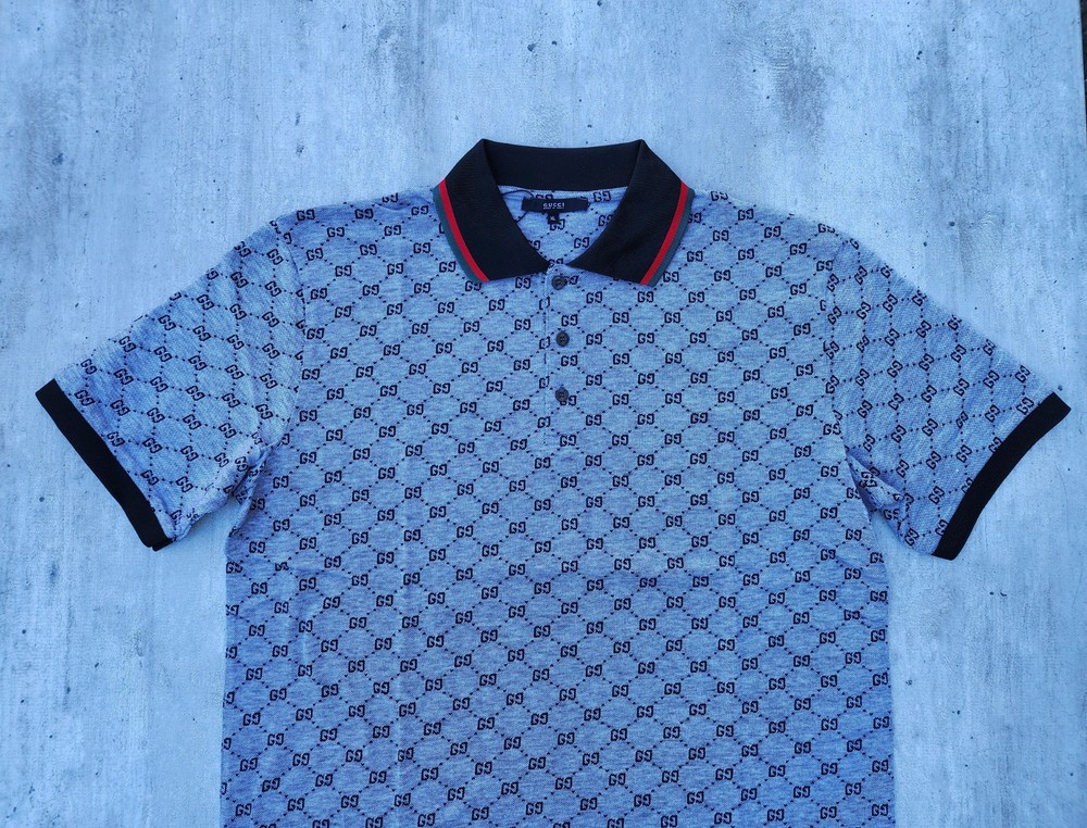 Polo Shirt Mens Gucci Regular Fit Excellent condition not have defect cotton button closure spread gg Classic polo Color Gray Tags inside outside Size XL Chest 59 Cm Length 80 Cm