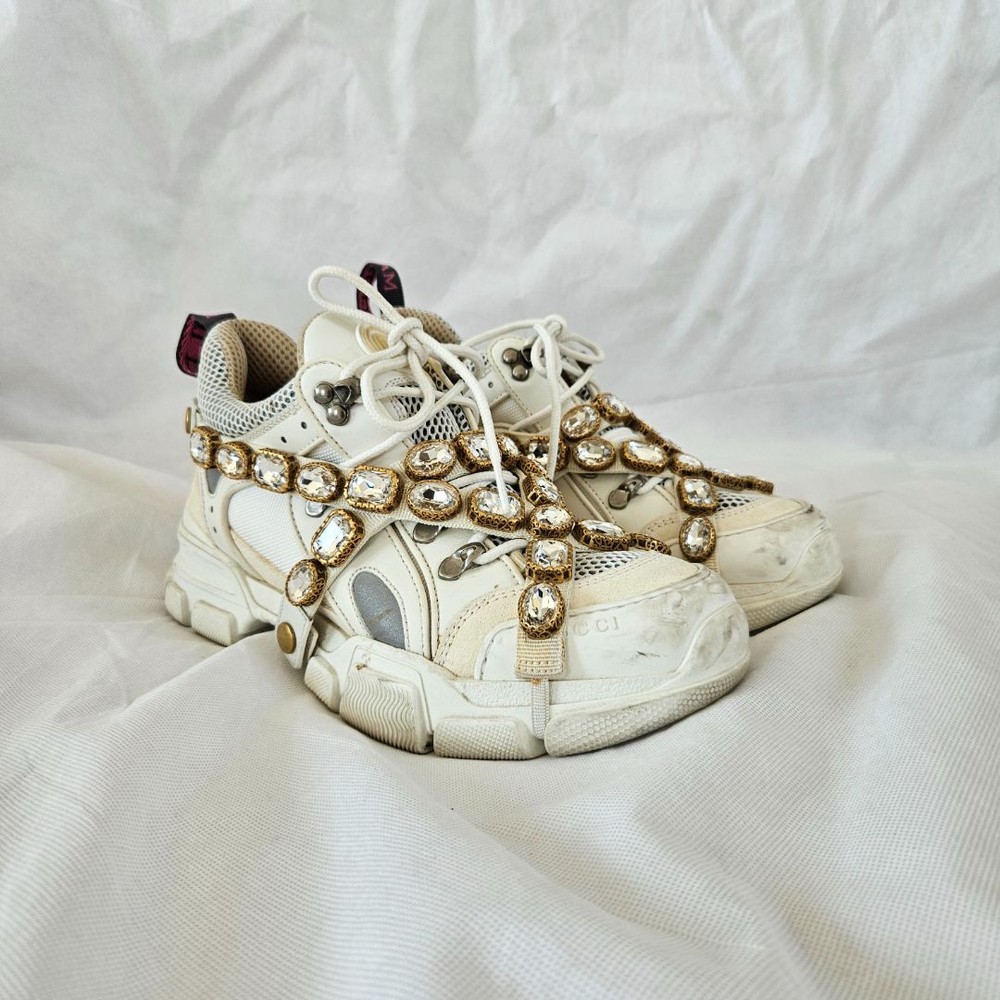 bopf Visit thebusinessofprelovedfashion store to see all the catalogue ABOUT US CUSTOMER FEEDBACK CONTACT US Gucci Cream Leather & Suede Flashtrek Lace Up Sneakers, Size 39 check_circle Handling Time: 4 days check_circle Additional custom duties may apply check_circle 100% Authentic Gucci Cream Leather and Suede Flashtrek Lace Up Sneakers Attributes Material: Fabric, rubber, leather, suede Color: Cream Condition: Gently used; scuffs on exterior Size: 39 Inclusions: dust bag About This Item Department: women Style: Sunglasses Upper Material: Fabric Brand: Gucci US Shoe Size: 39 Color: Cream How we list items 1. METICULOUS INHOUSE AUTHENTICATION PROCESS Our in-house luxury consignment experts offer a combined experience of over 8 years in the fashion resale industry enabling them to carefully inspect all items listed online to ensure they are authentic 2. VERIFY AUTHENTICITY USING ENTRUPY AI TOOL We use Entrupy: The world's first and only on-demand authentication solution for high-value goods as an additional layer of authenticity ventication. 3. THIRD PARTY PROFESSIONAL AUTHENTICATION SERVICES We use Entrupy: The world's first and only on-demand authentication solution for high-value goods as an additional layer of authenticity ventication. Customers with frequent return orders will incur a restocking fee of 30$ per order. This policy helps cover administrative costs es thoughtful purchases. About the Seller Shipping Policy Description Payment Policy Description Return Policy Description Welcome to The Business of Preloved Fashion (BOPF) – your trusted source for authentic, preloved luxury fashion. Founded in Dubai in 2021 by Hadiza Ibekwe, who brings over 10 years of experience in luxury resale, BOPF is committed to making luxury fashion more accessible and sustainable. Why Shop With Us? Authenticity Guaranteed: Every item is carefully inspected and authenticated by our experts. New Treasures Weekly: Our collection is updated weekly with carefully curated preloved designer pieces, including preloved bags, clothing, shoes , accessories and jewelry. Luxury for Less: Find high-end designer items at a fraction of their original prices. Quick Shipping: Enjoy fast, reliable shipping with every purchase. Sustainable Fashion: Join us in promoting a more sustainable fashion future by choosing preloved. Have questions? Reach out via eBay messaging – we're readily available! • We will use DHL courier for safe and fast delivery. • Import duties, taxes and charges are the buyer's responsibility. Please check with your country's customs office to determine what these additional costs will be prior to bidding or buying. • We accept only online payment method. • We accept payment by PayPal and Credit / Debit cards entered on eBay only. Customers with frequent return orders will incur a restocking fee of 30$ per order. This policy helps cover administrative costs and encourage thoughtful purchases.